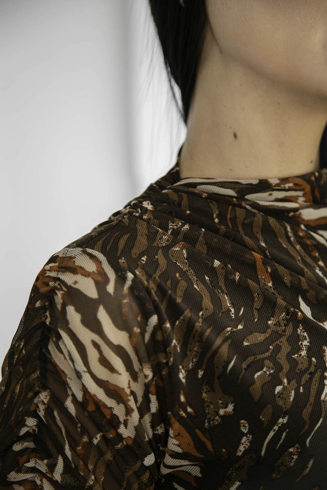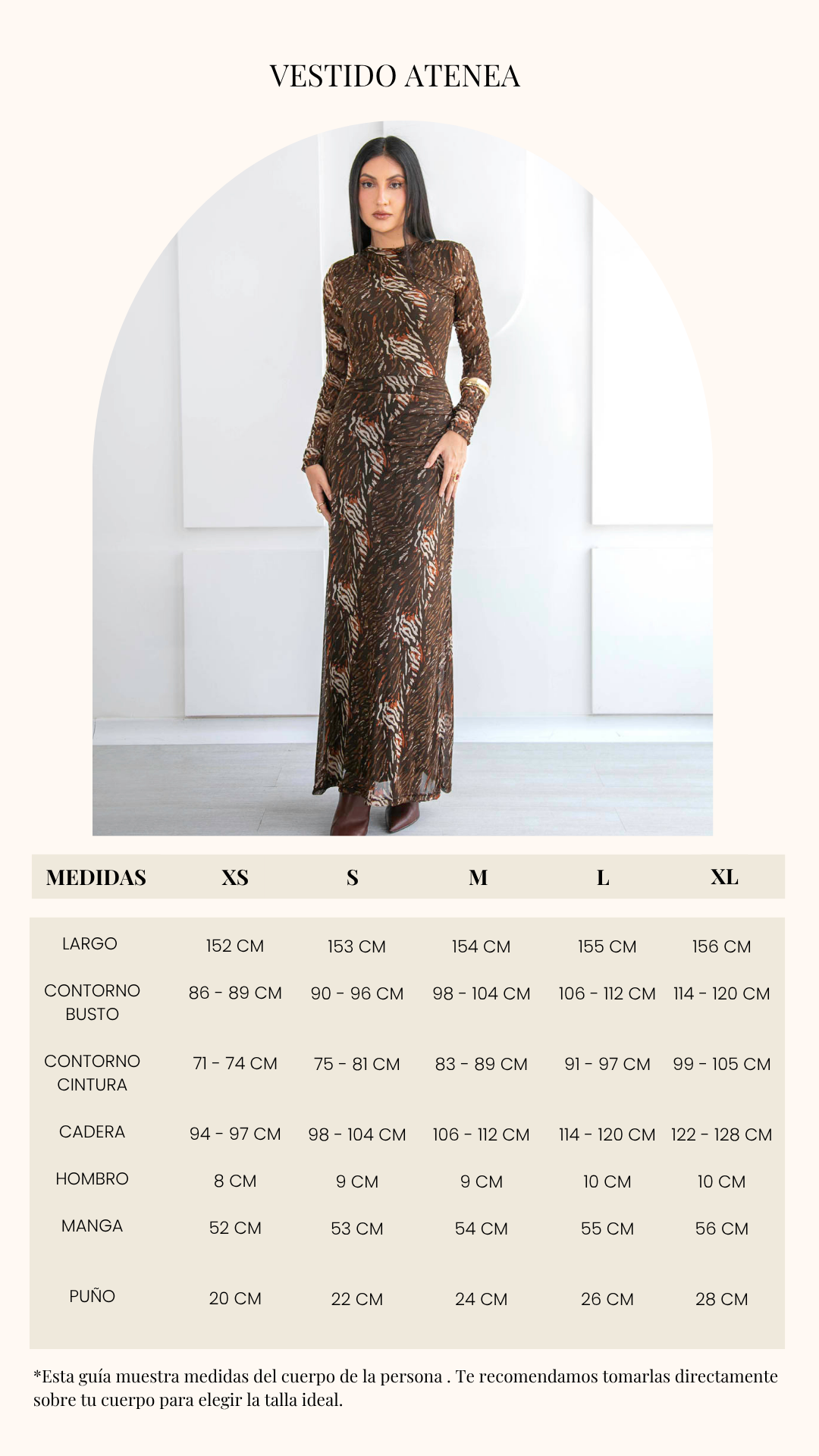 Su estampado orgánico en tonos marrones, chocolate y matices beige crea un efecto visual elegante y romántico. Ideal para eventos de tarde o noche, cenas especiales, celebraciones íntimas y ocasiones donde quieras destacar con un look elegante pero sobrio.