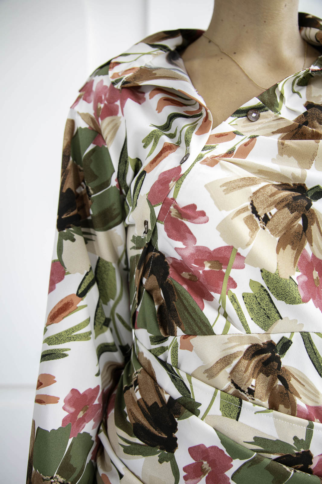 Vestido Ecléctico su base floral vibrante, tonos verdes, rosados, coral y matices tierra lo convierte en una pieza protagonista, perfecto para lucir en cualquier temporada, ideal para quienes aman las piezas con personalidad.