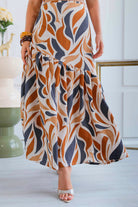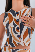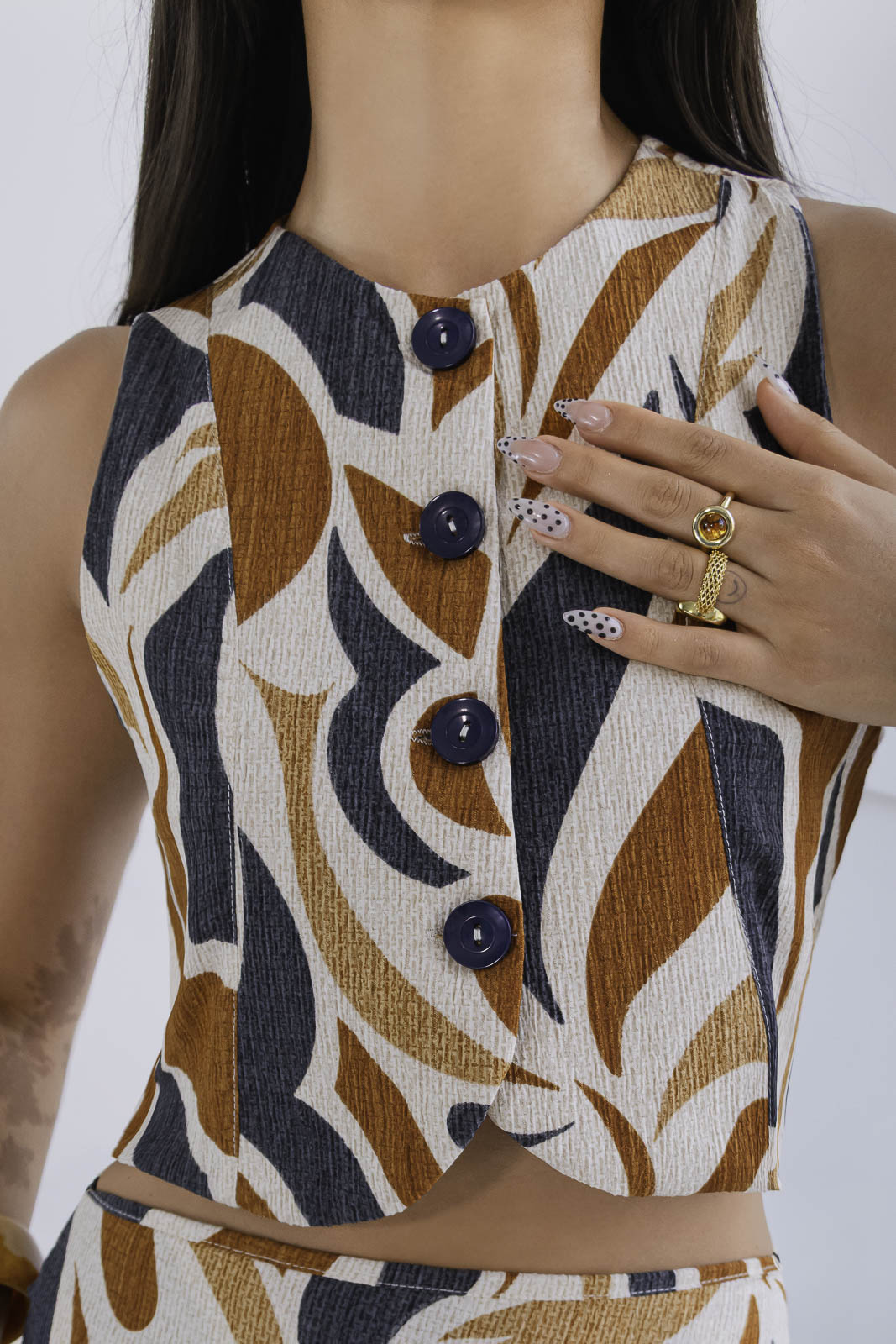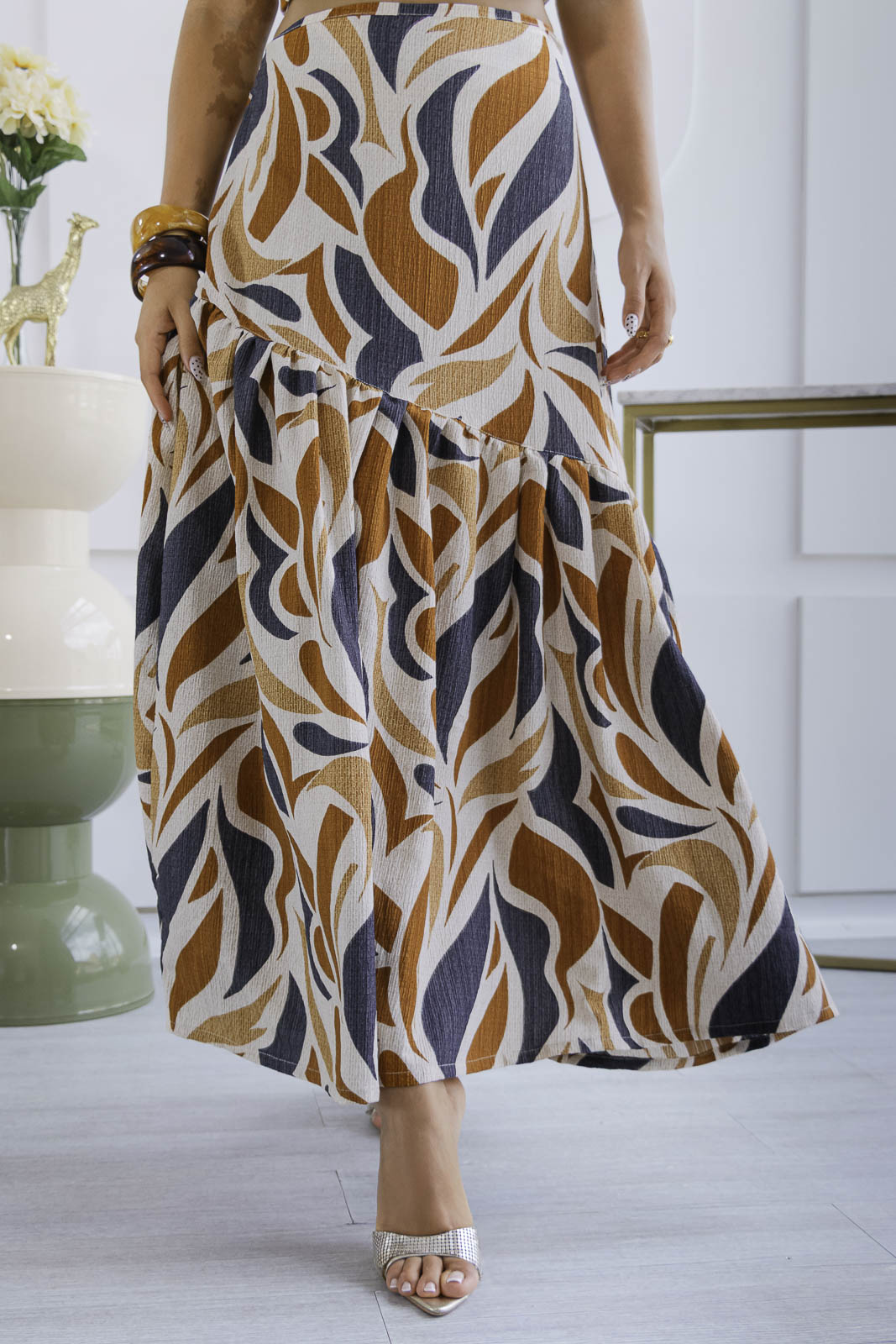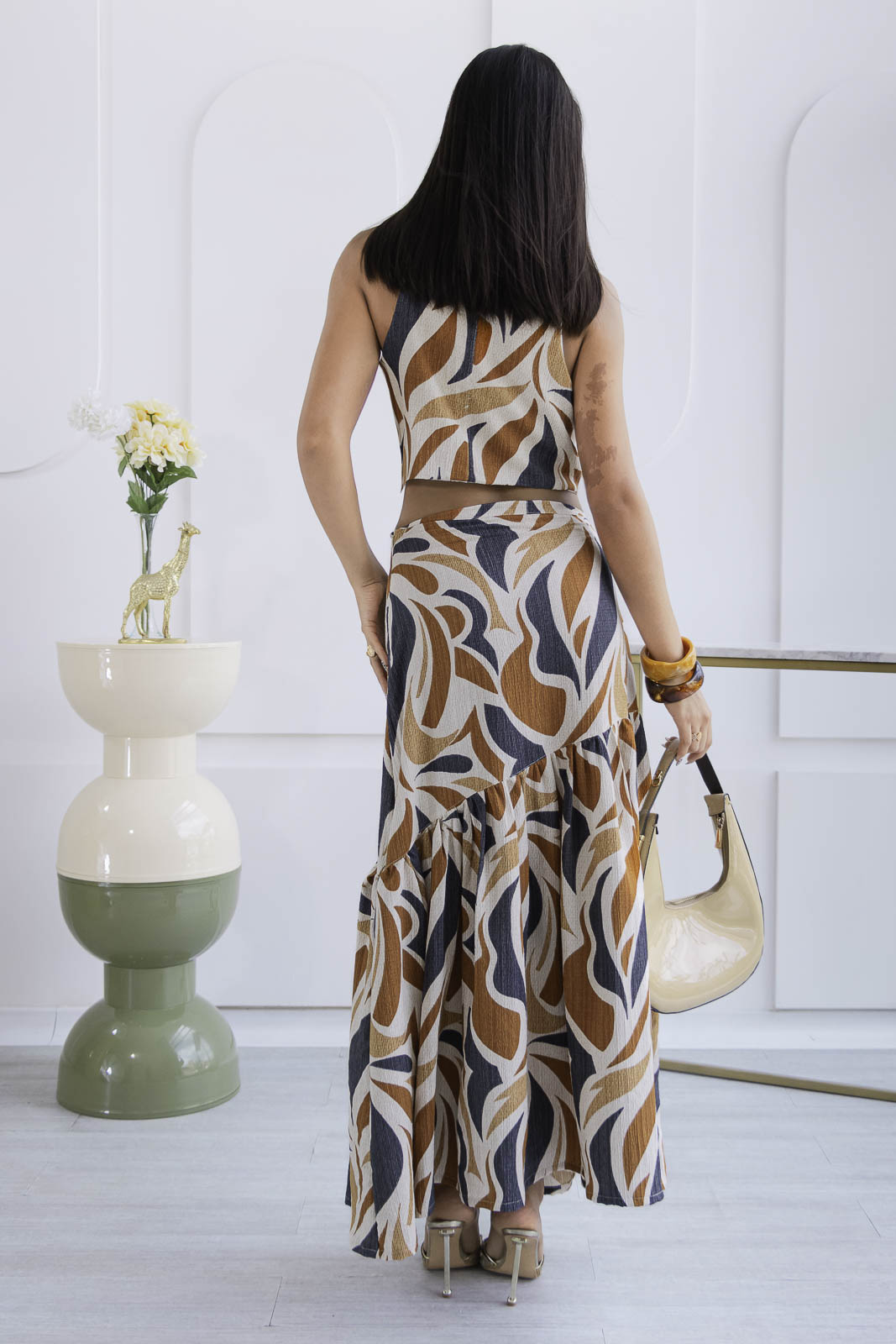 Un conjunto que enamora a primera vista. Set 2 de piezas, en tonos estampado en tonos ámbar, marfil y negro creando un contraste sofisticado y elegante.