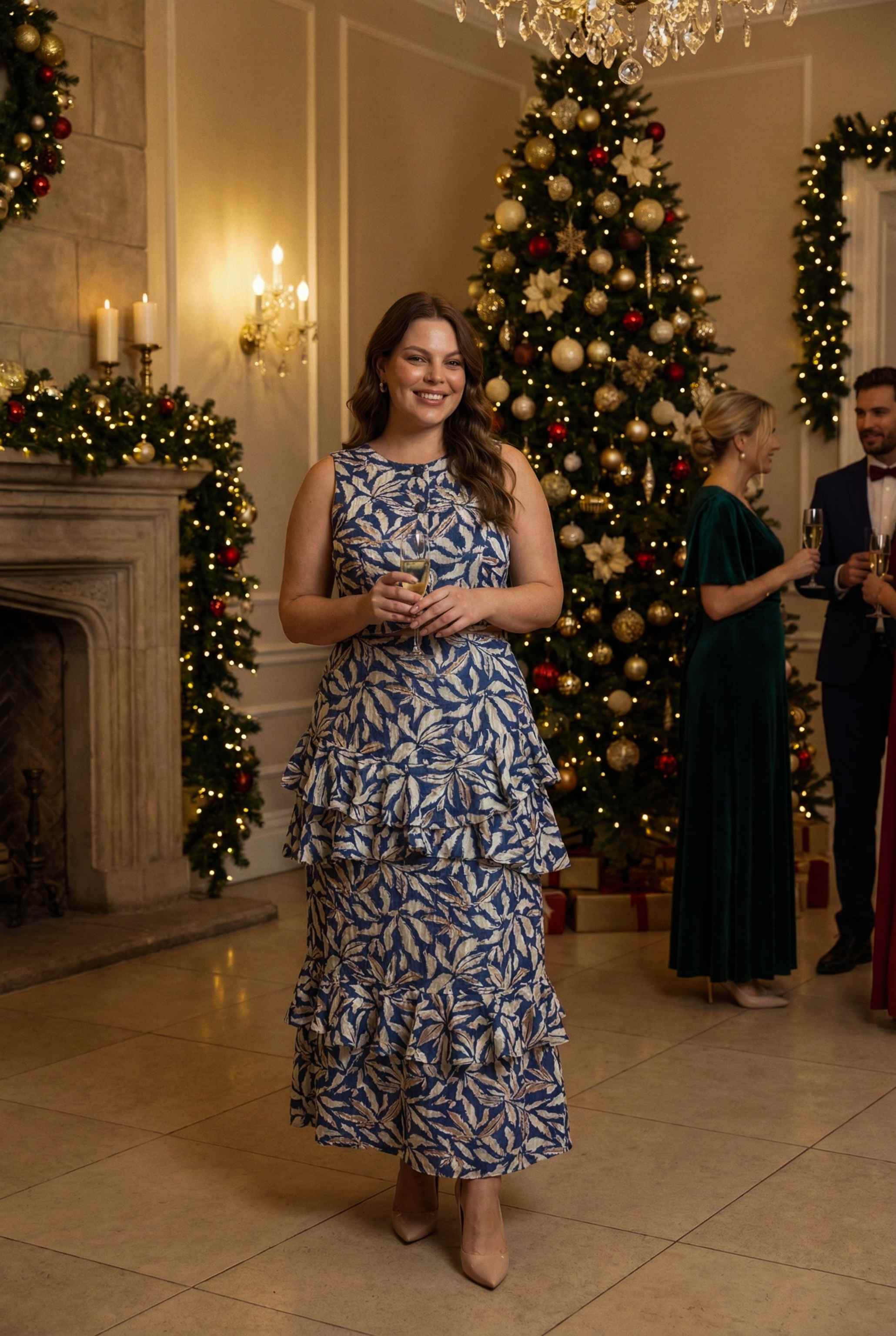 Ideal para cenas navideñas en clima cálido, celebraciones familiares, eventos al aire libre, brunchs festivos o incluso reuniones de Año Nuevo. Su estilo versátil te permite jugar con accesorios dorados, nude o plateados para elevarlo aún más.