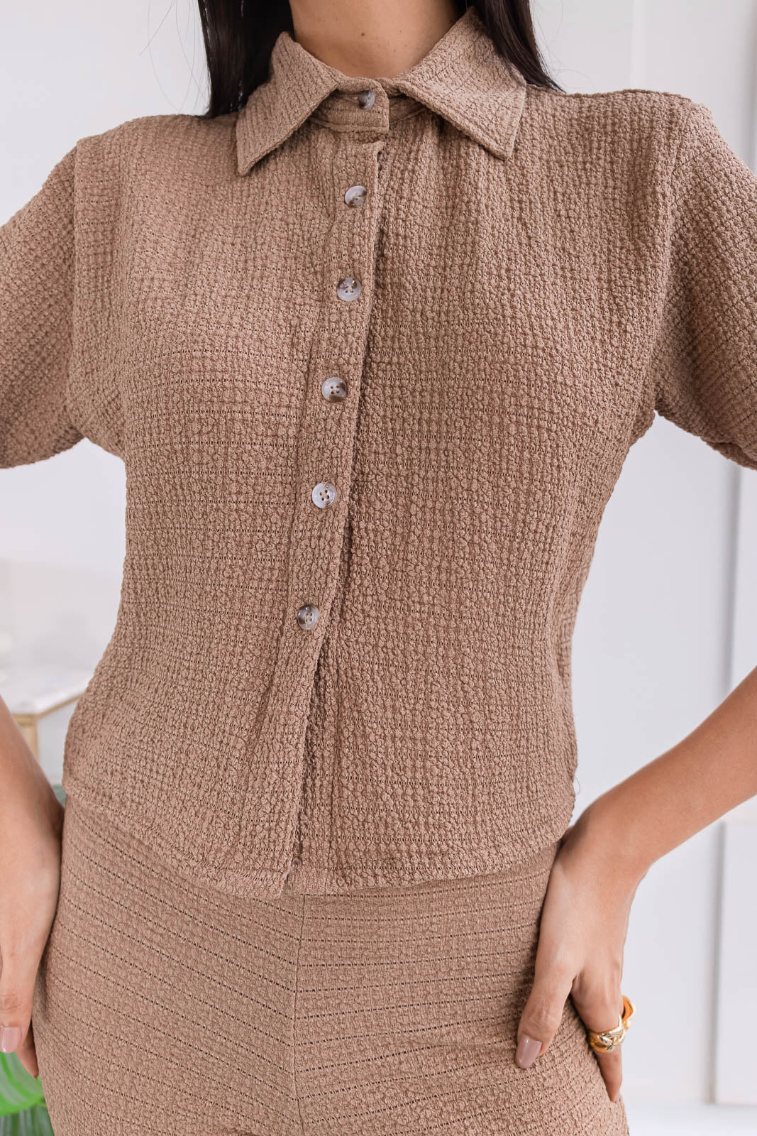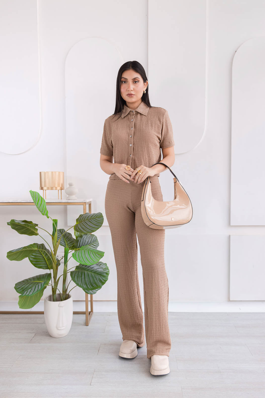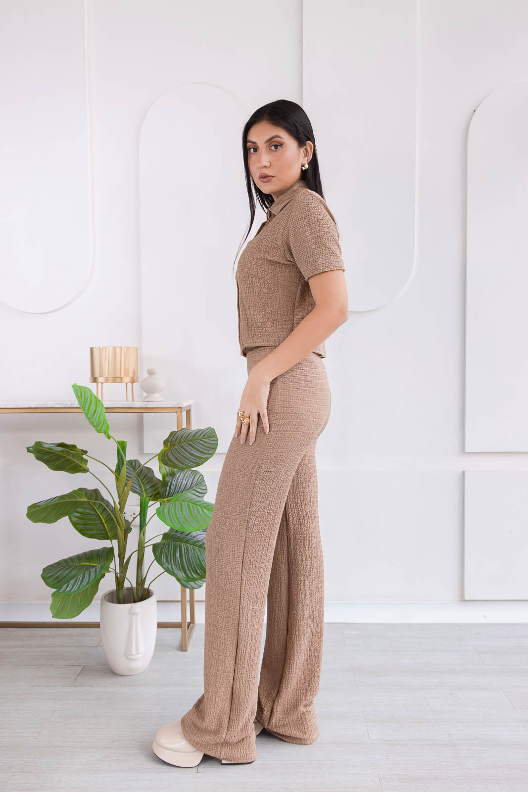 Set de 2 piezas. Este conjunto se adapta suavemente al cuerpo brindando estilizando la figura. Un cálido tono arena neutro y atemporal, ideal para combinar con tonos claros, tierras o metálicos. Este color realza cualquier tono de piel y permite usar el set tanto de día como de noche.