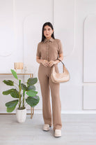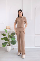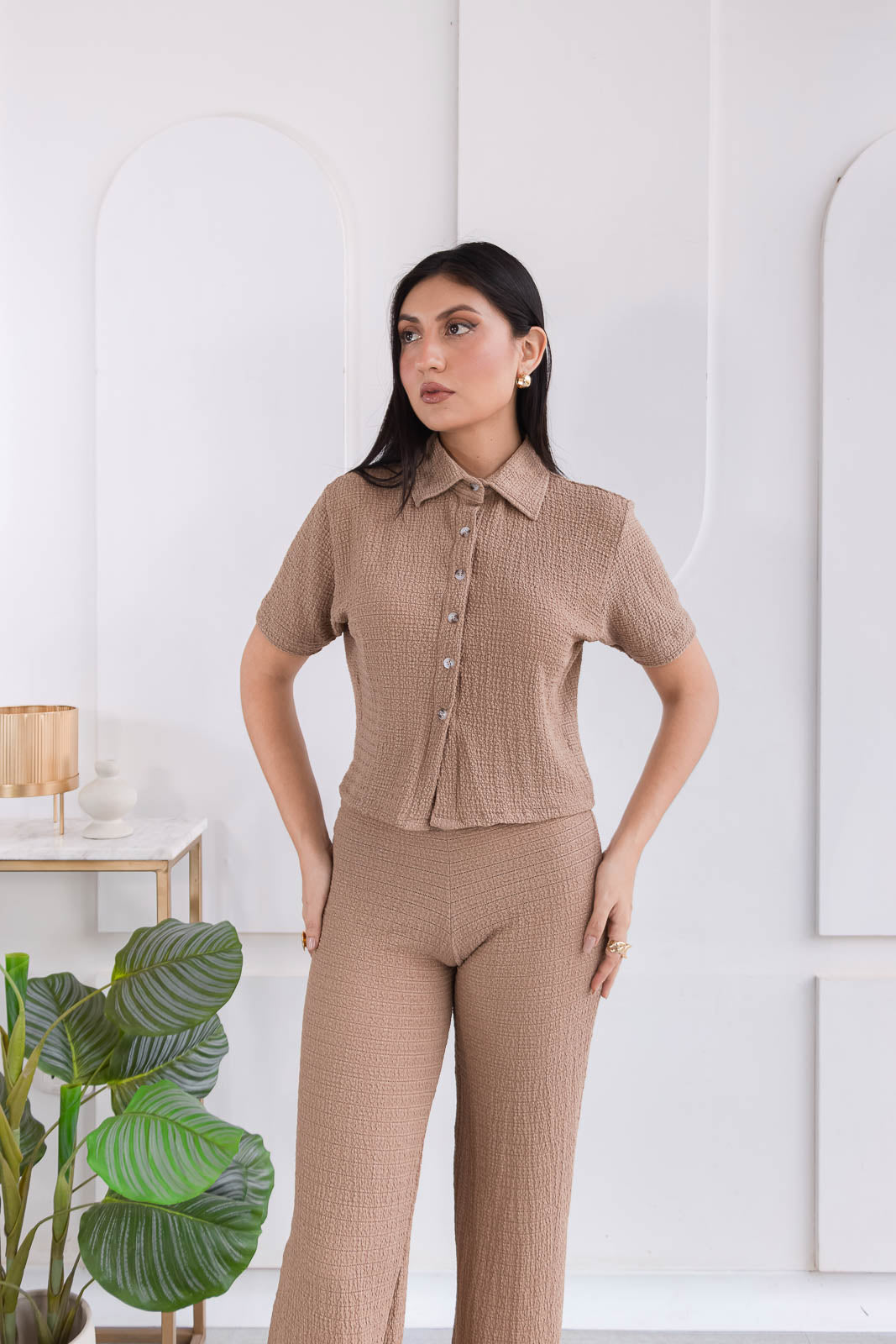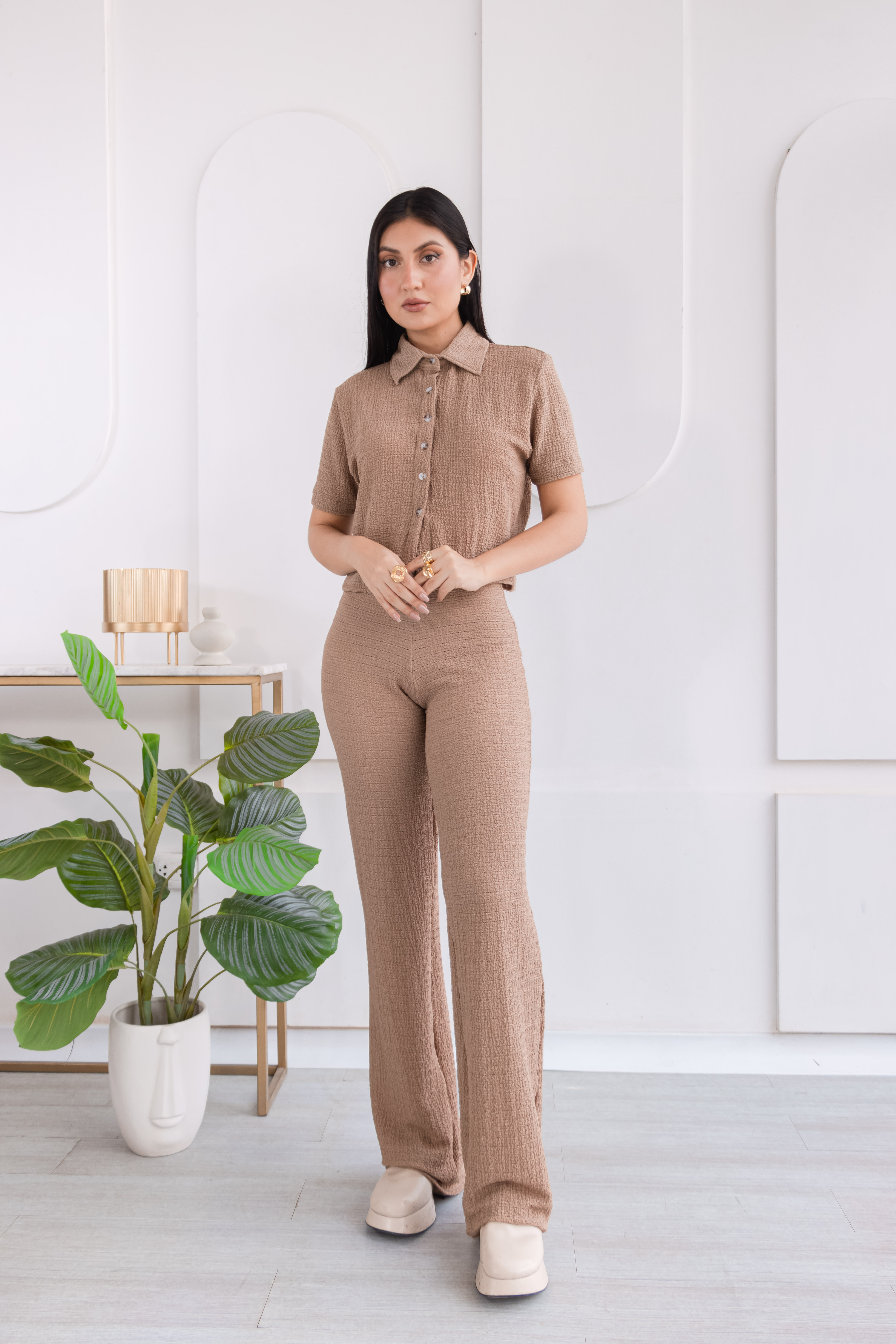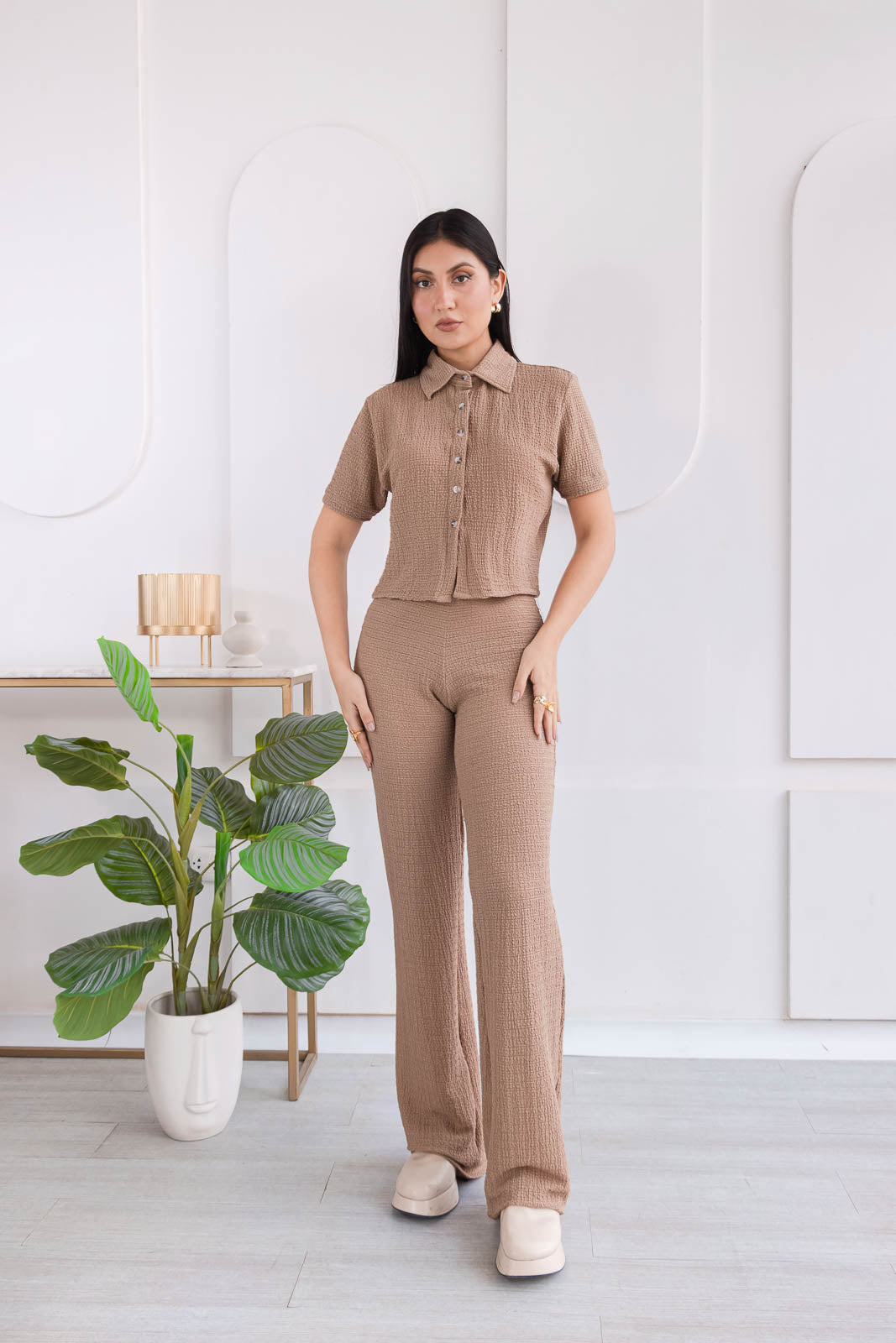 Set de 2 piezas. Este conjunto se adapta suavemente al cuerpo brindando estilizando la figura. Un cálido tono arena neutro y atemporal, ideal para combinar con tonos claros, tierras o metálicos. Este color realza cualquier tono de piel y permite usar el set tanto de día como de noche.
