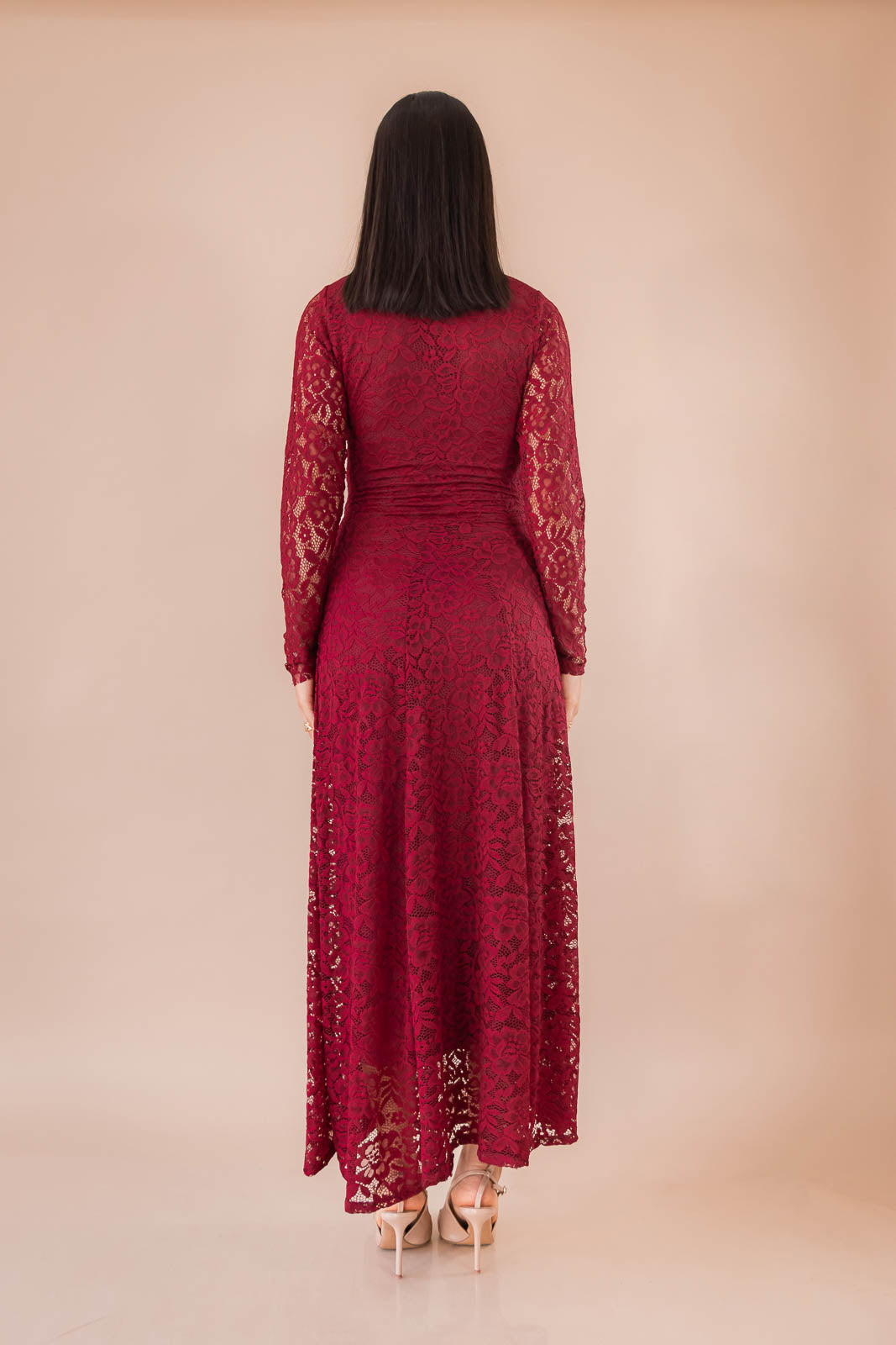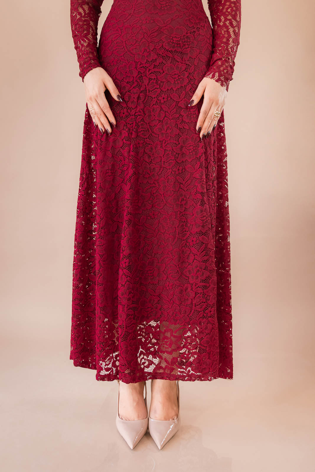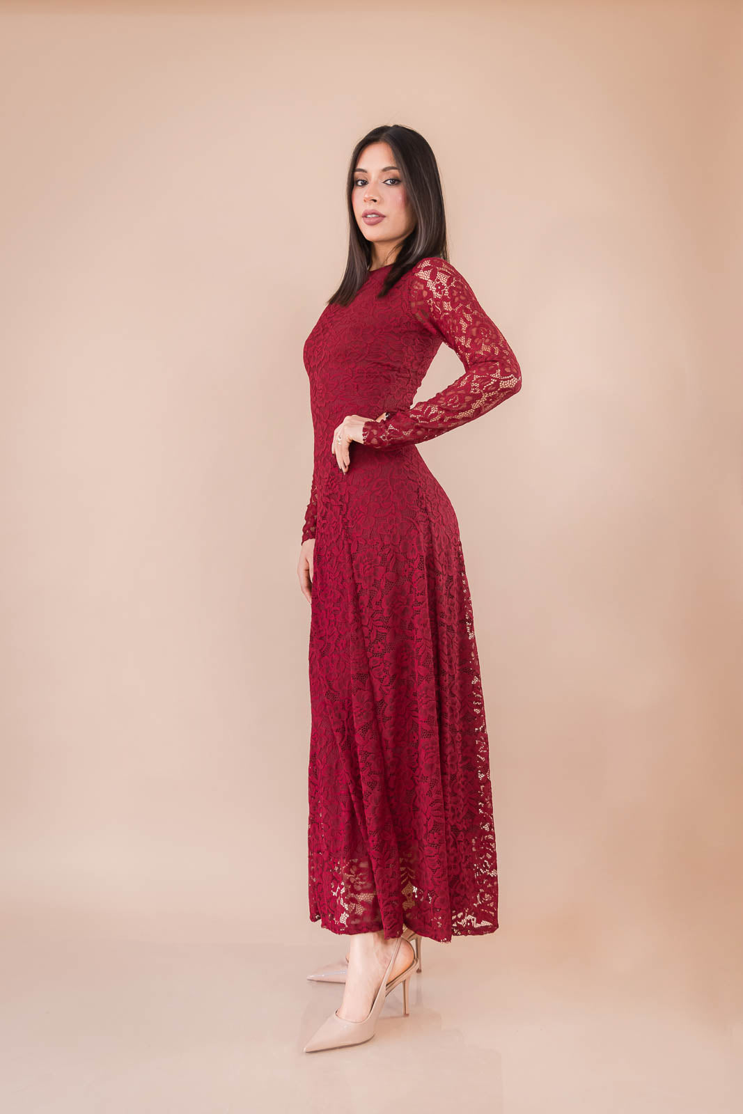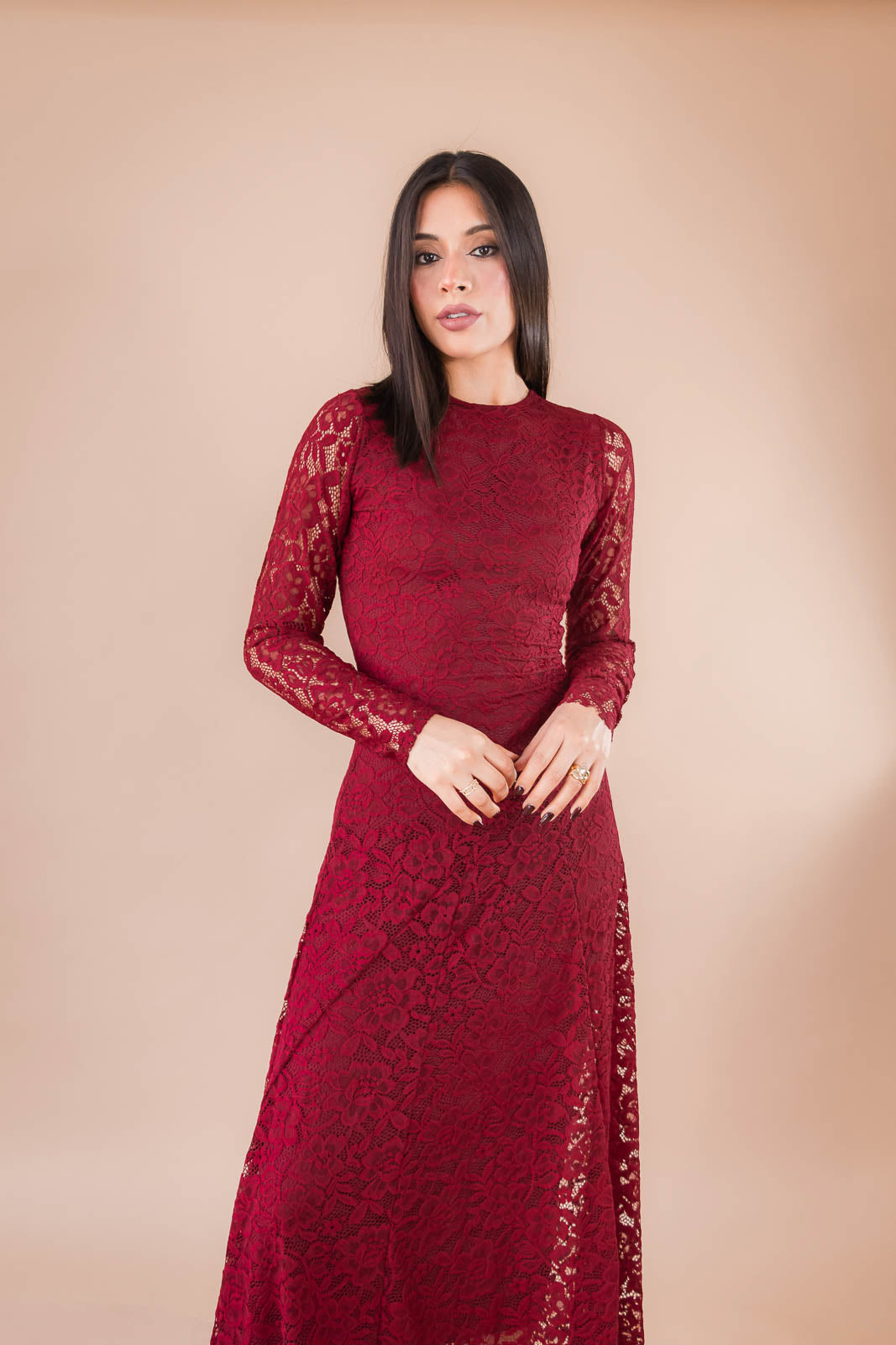 El vestido Zaira fue diseñado como un homenaje a esa historia: un vestido elegante, largo y ceñido al cuerpo, confeccionado en encaje forrado resaltando la feminidad en cada detalle.