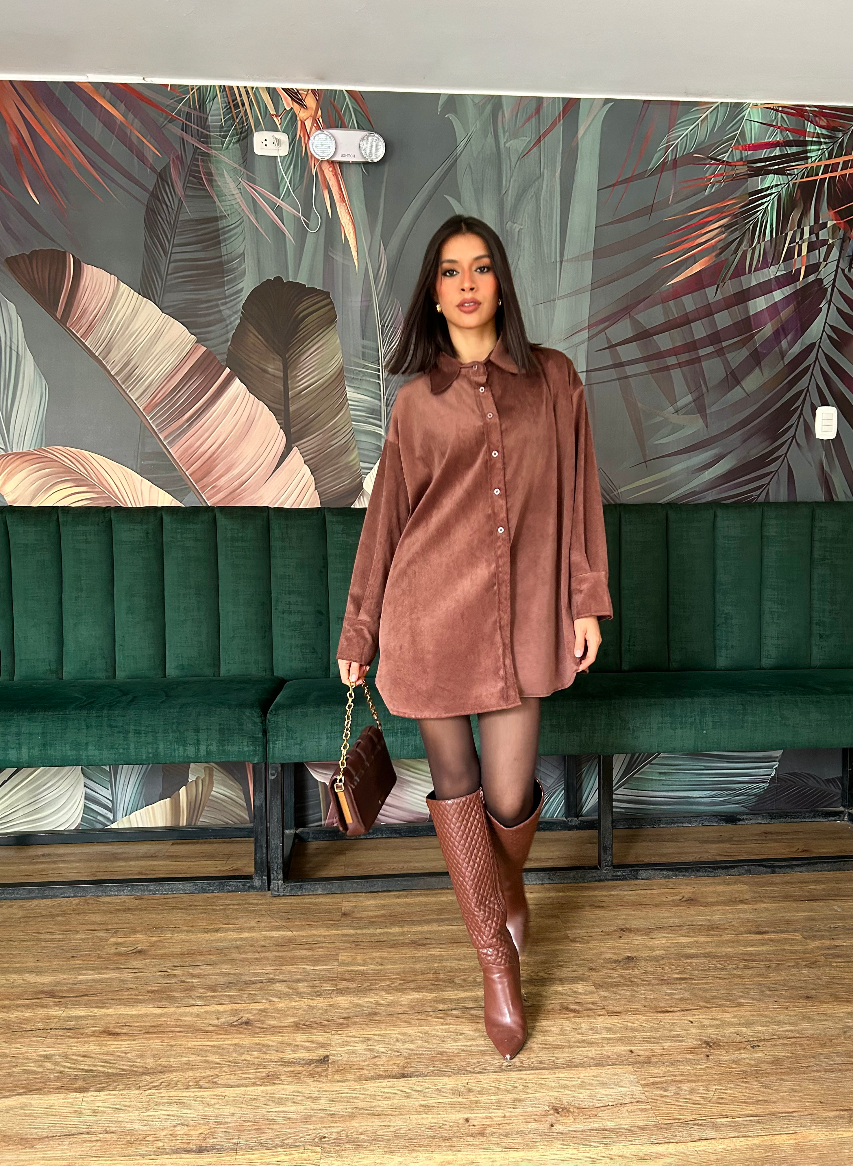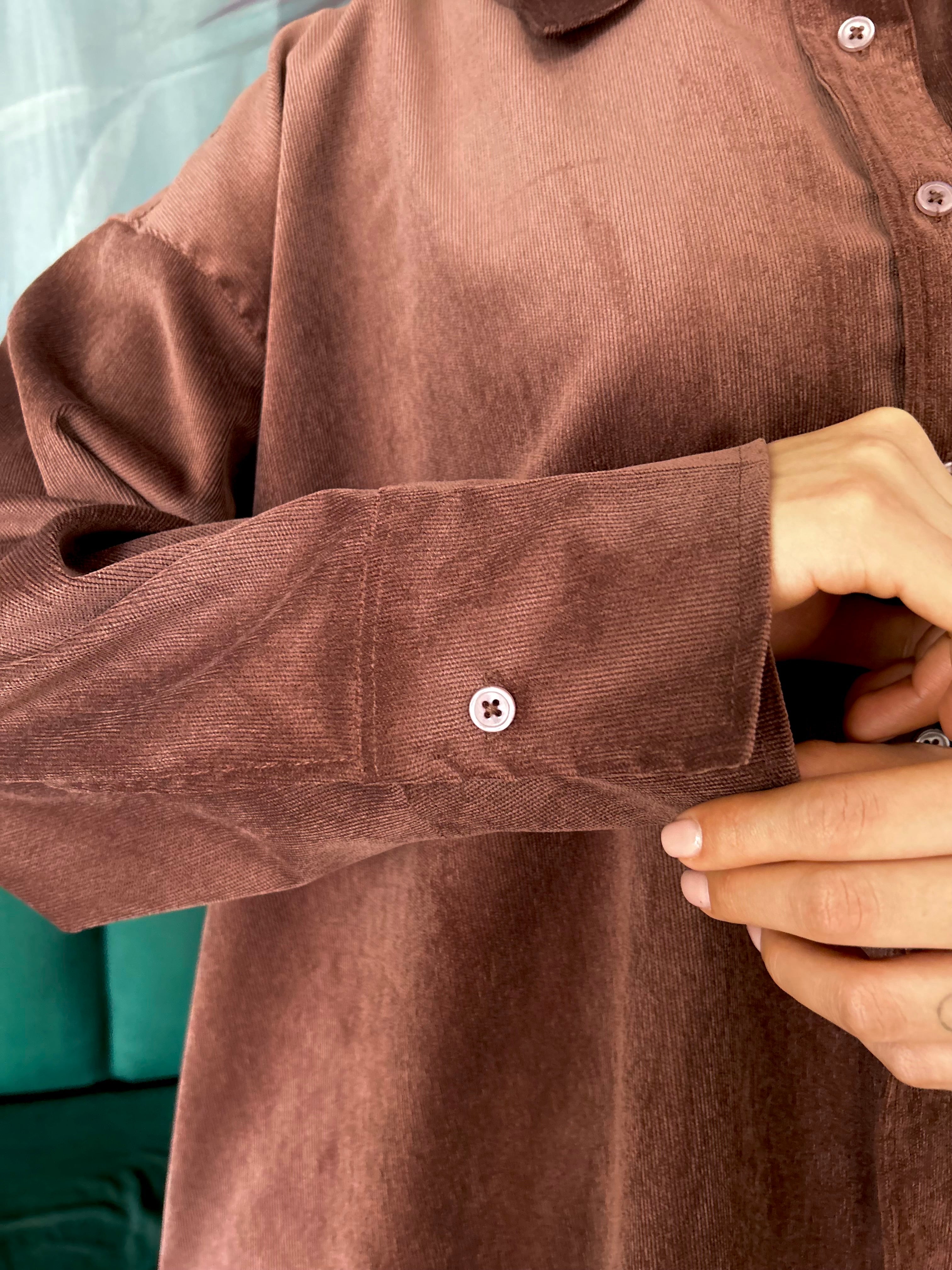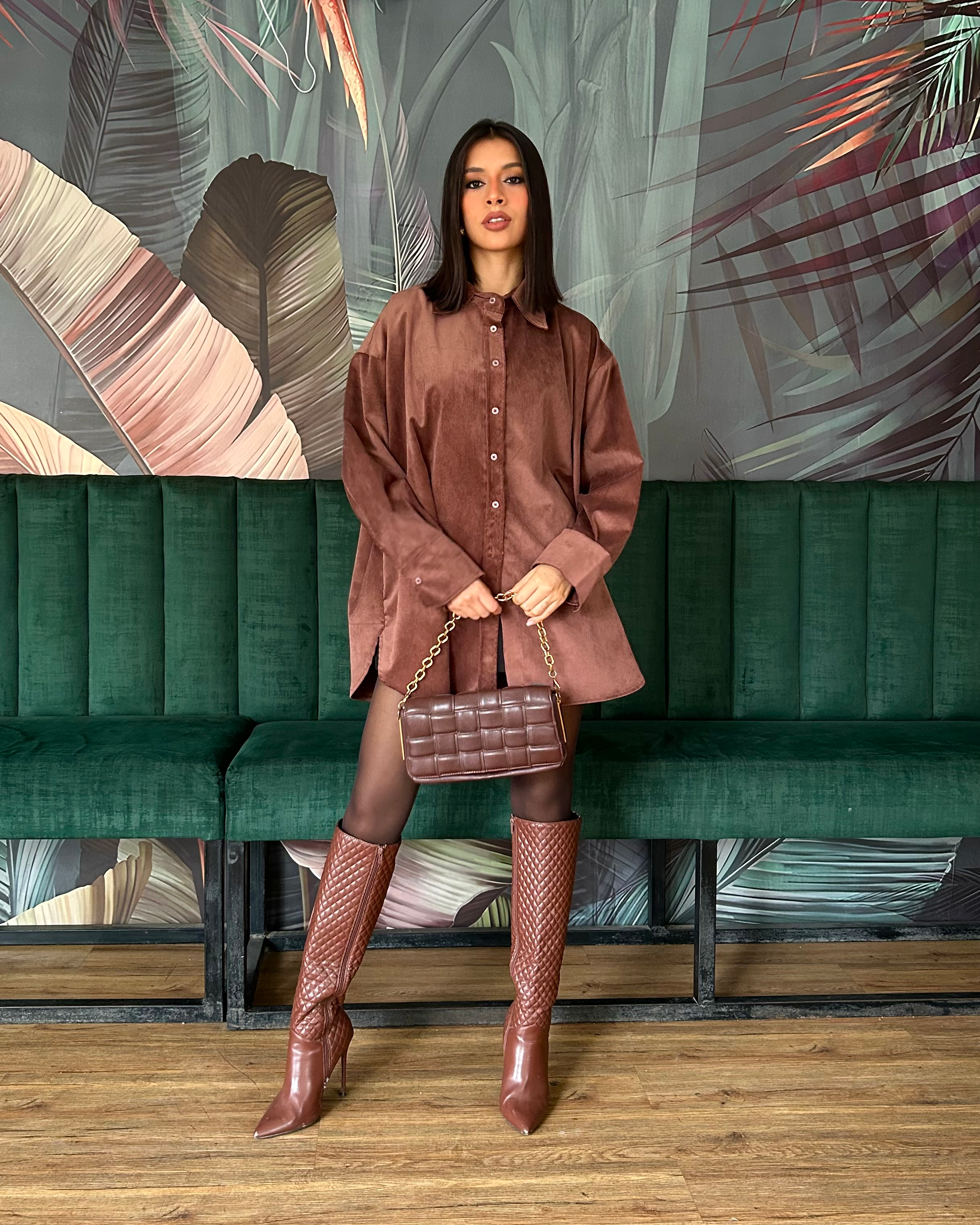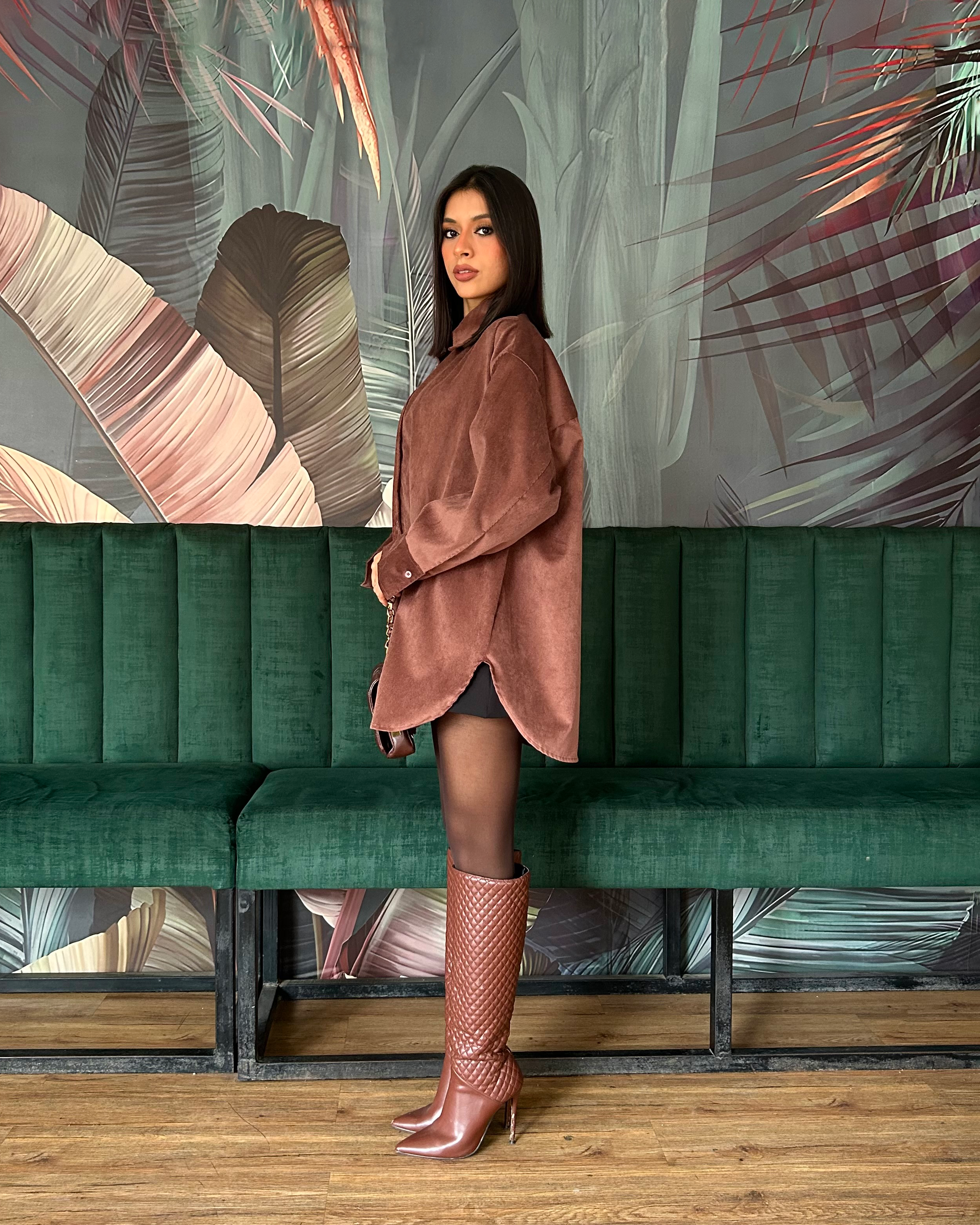 La camisa Georgia es ese básico elevado que se roba todas las miradas. Con un diseño oversized y estructura fluida. Su color Mocha Mousse, un marrón cálido y profundo, es uno de los tonos protagonistas de la temporada por su versatilidad.