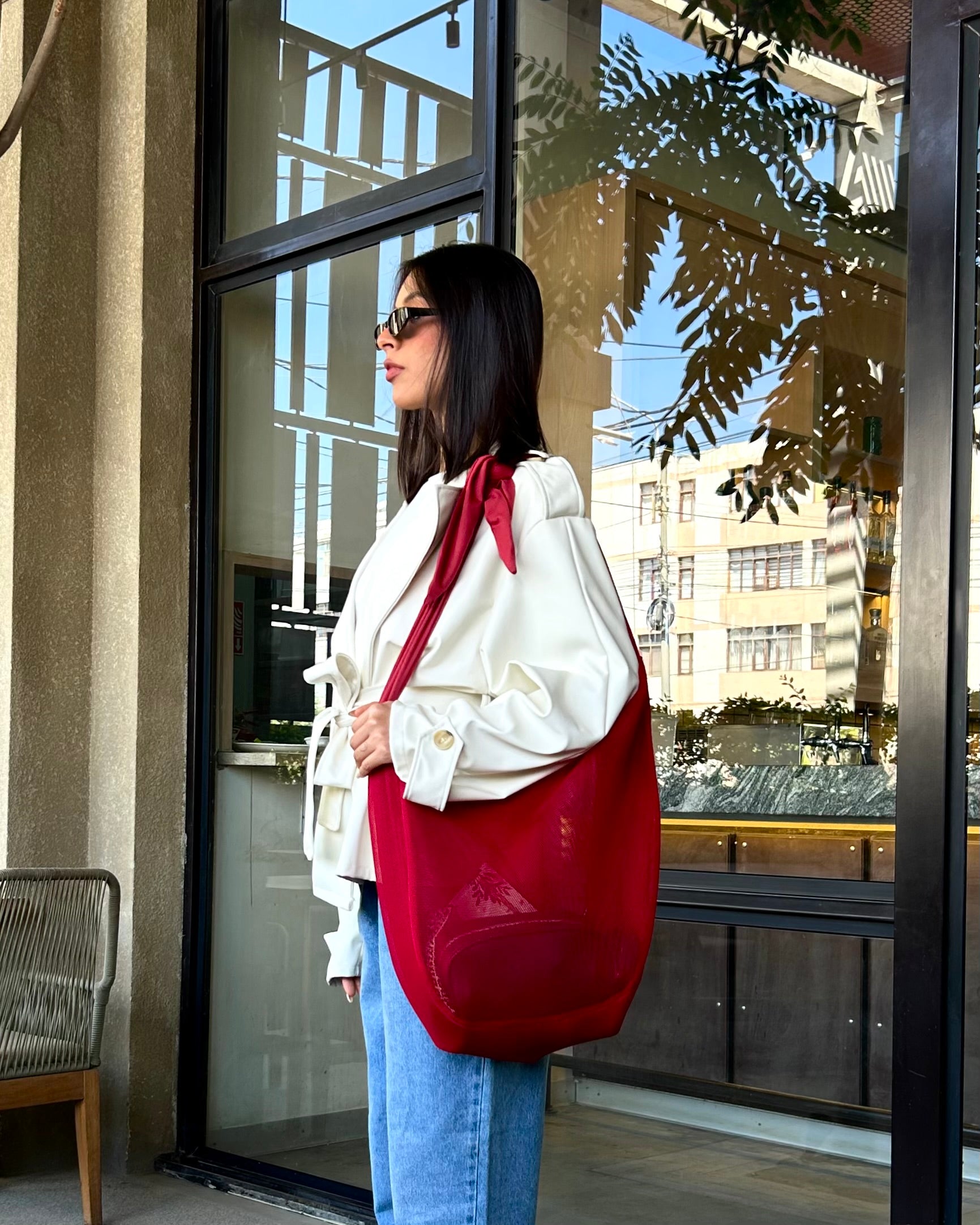 Tote Bag FS y súmale a tu look un toque práctico y con estilo. Su diseño en malla y acabado minimalista la convierten en el complemento ideal para cualquier plan.