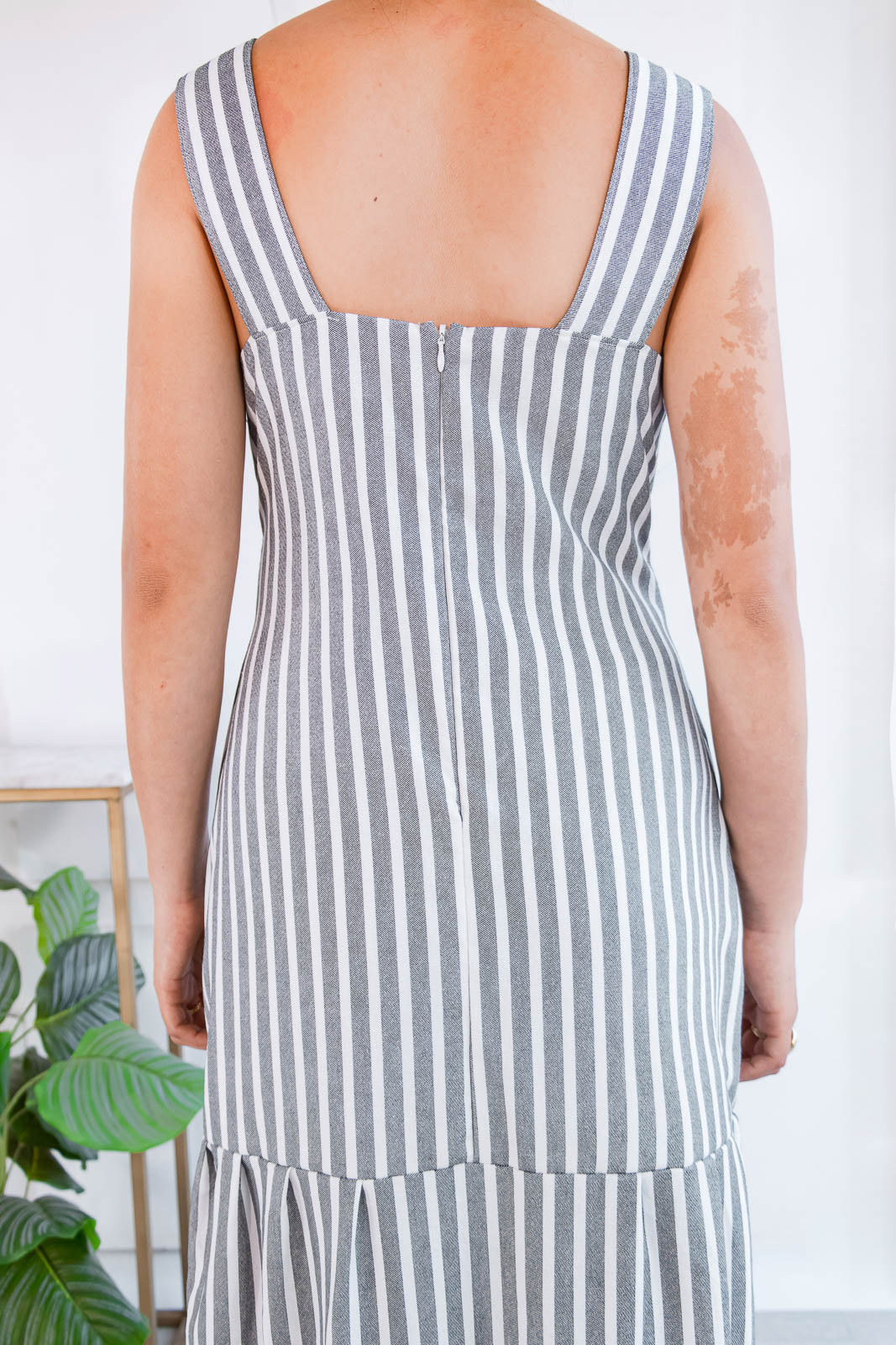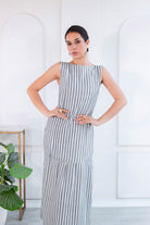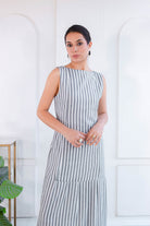 Amalia combina un diseño elegante y minimalista con un estampado de rayas verticales en tonos gris y blanco, creando un efecto visual que estiliza la figura al instante. Su corte recto y material ligero lo hacen perfecto para mantenerte cómoda y estilizada en cualquier ocasión. Combínalo con accesorios minimalistas y calzado neutro para destacar su diseño vibrante y llamativo. Ideal para un brunch al aire libre o un evento casual.