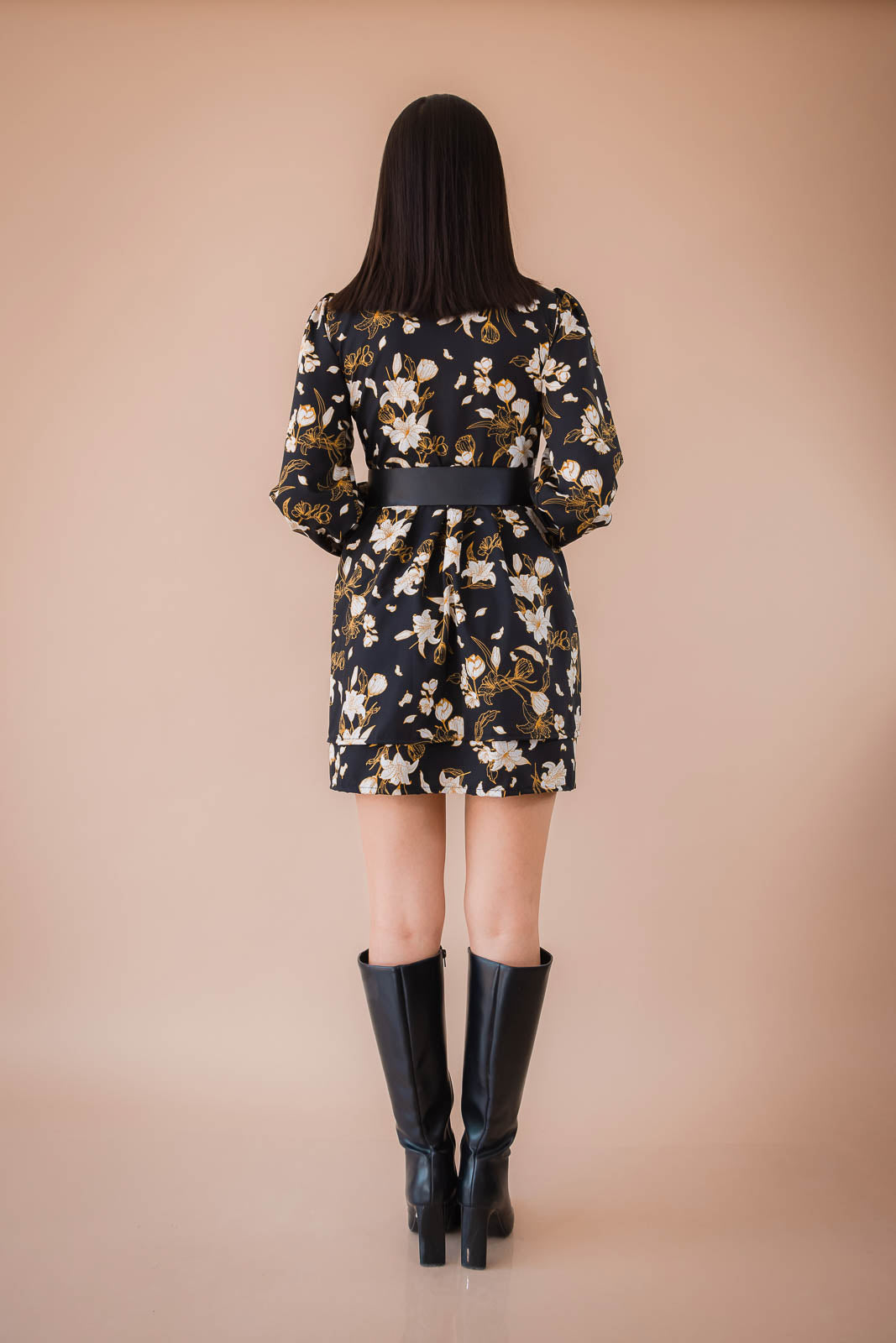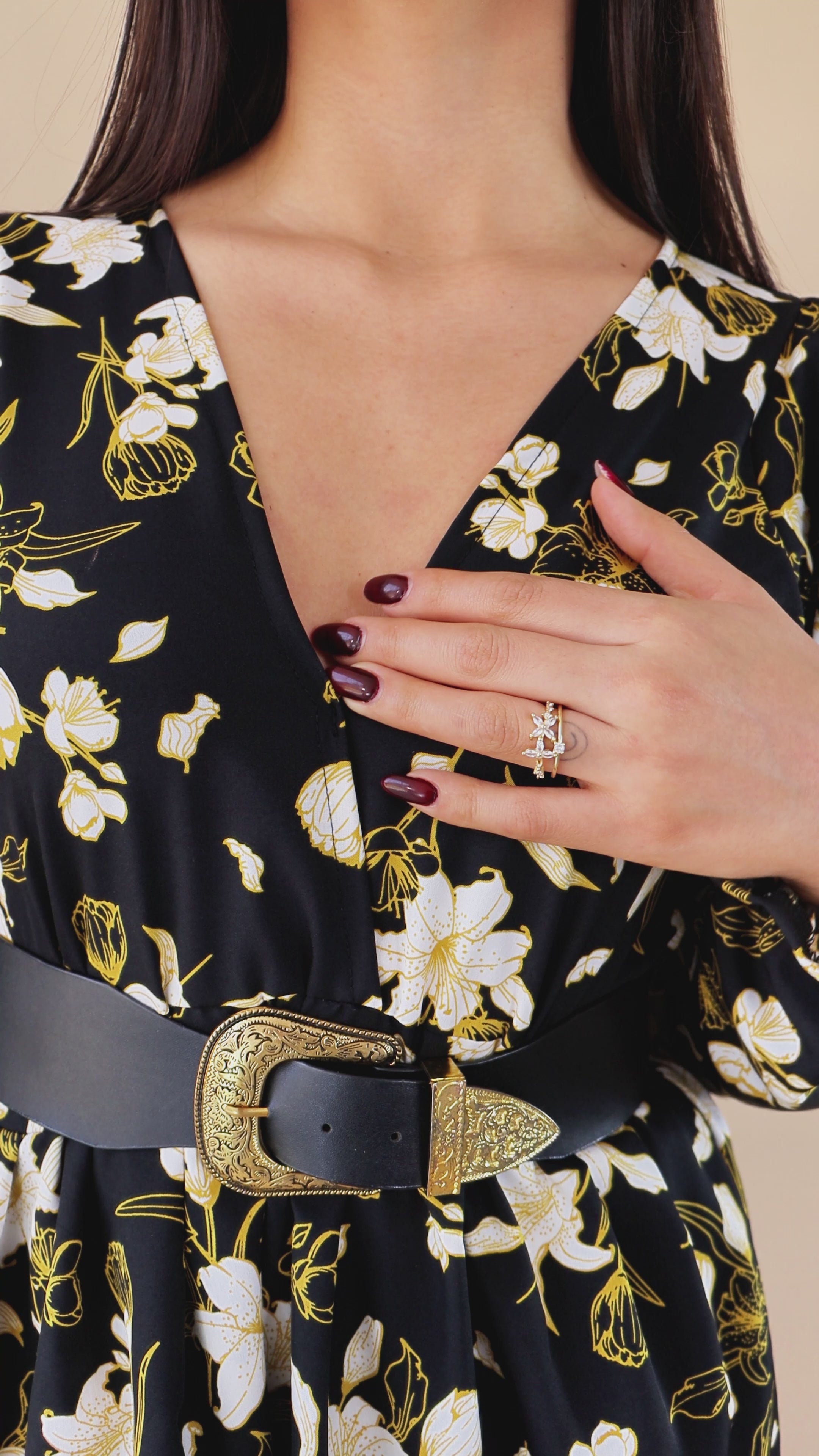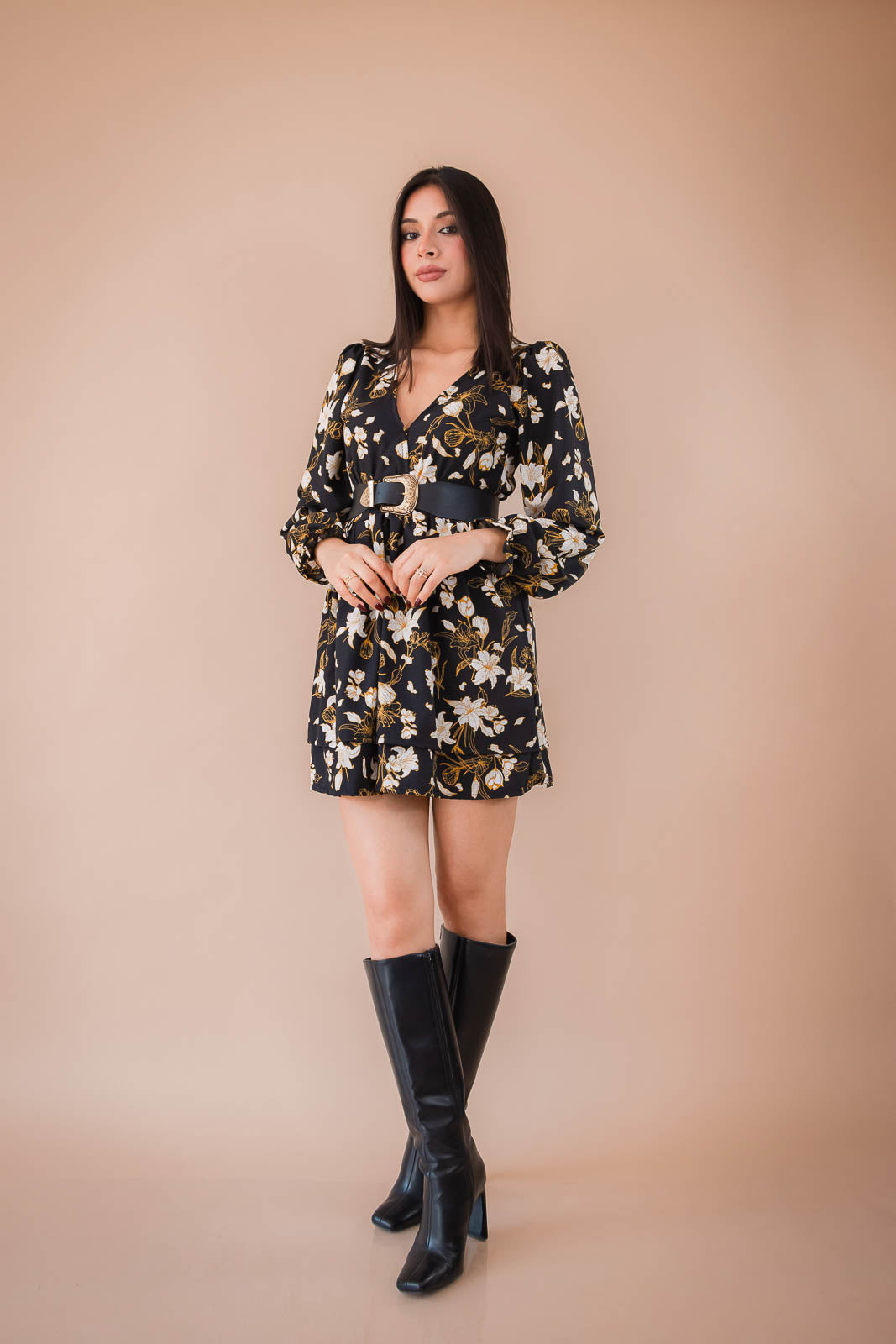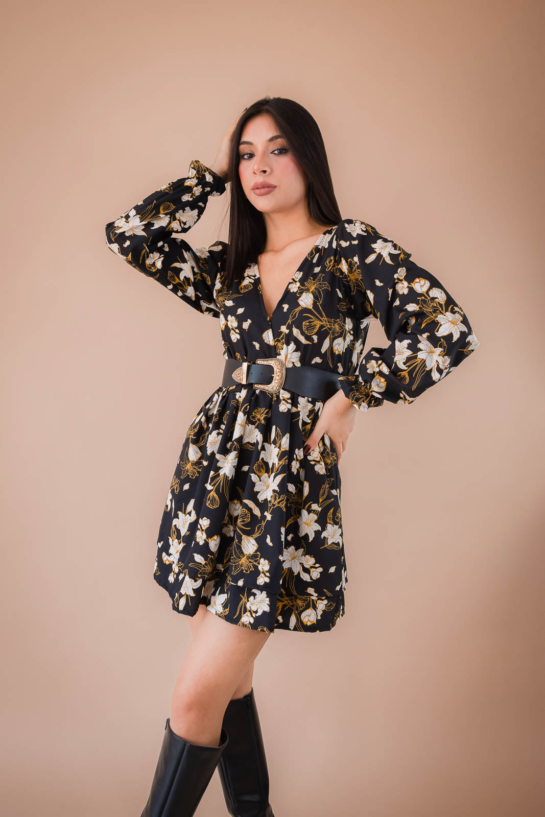Uno de los clásicos de FRAMAshop no podía faltar en esta colección especial: Gaela, vestido corto, fluido, con escote V que alarga visualmente el cuello, mangas largas con sutiles vuelos aportando feminidad y una falda en 2 tiempos. Ideal para eventos de día, cenas especiales o con amigas.