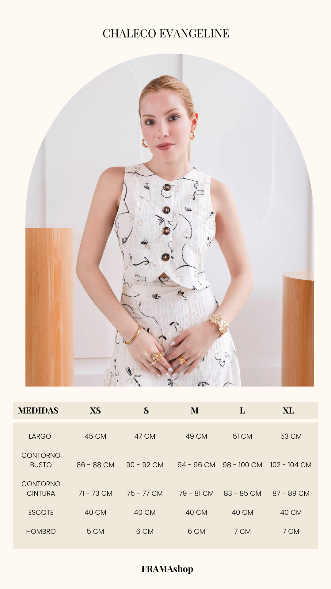 La modelo mide 1.75 cm y usa talla S