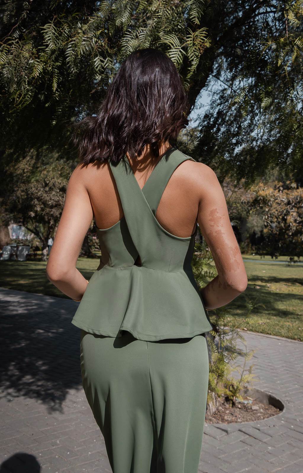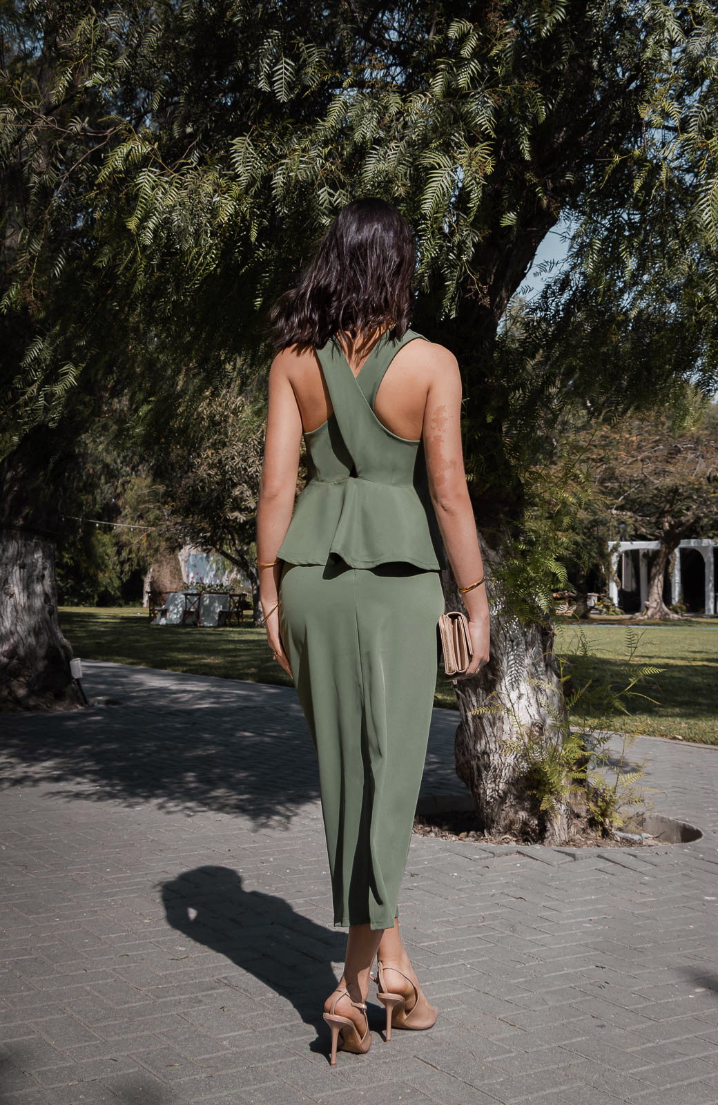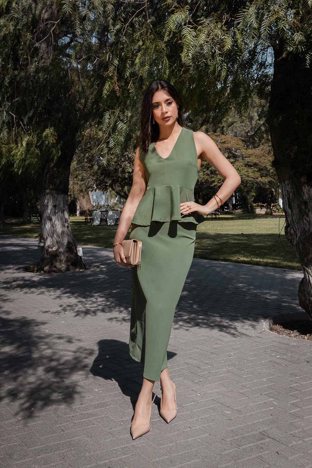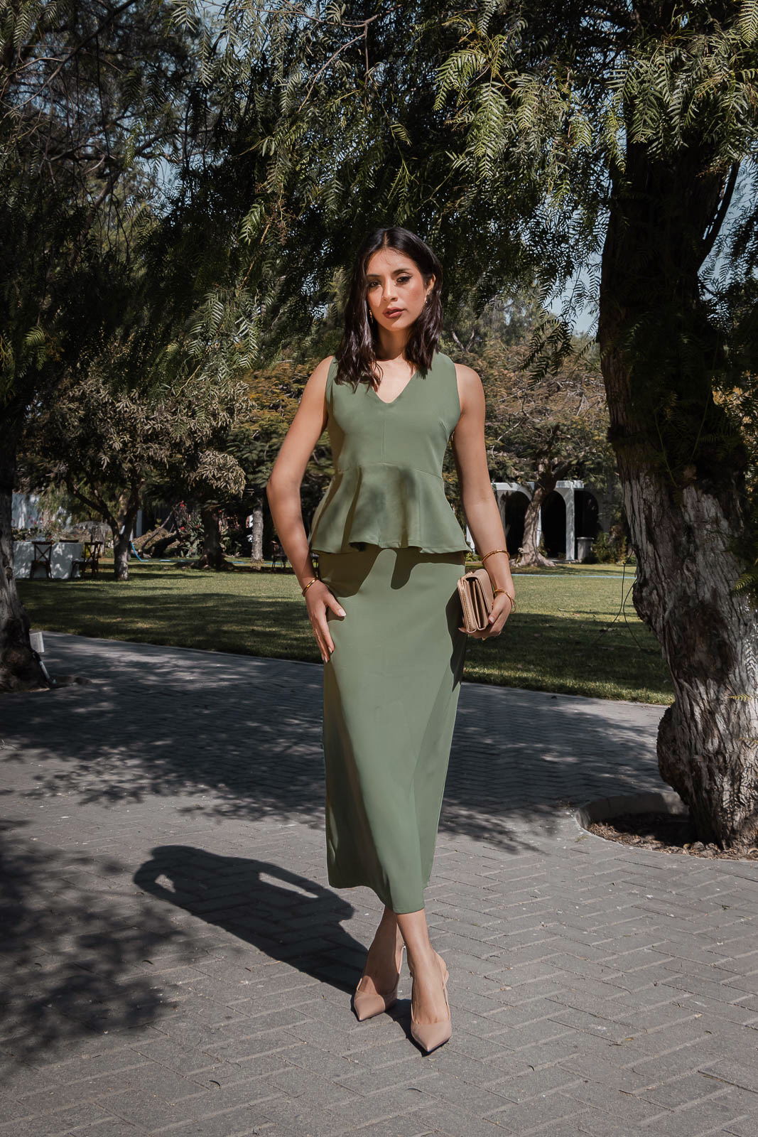 Mariam enamora por su sencillez elegante. Set 2 de piezas, en tono verde oliva transmite serenidad y sofisticación, convirtiéndose en la elección perfecta para brillar en celebraciones de día como bautizos, matrimonios al aire libre o reuniones especiales.