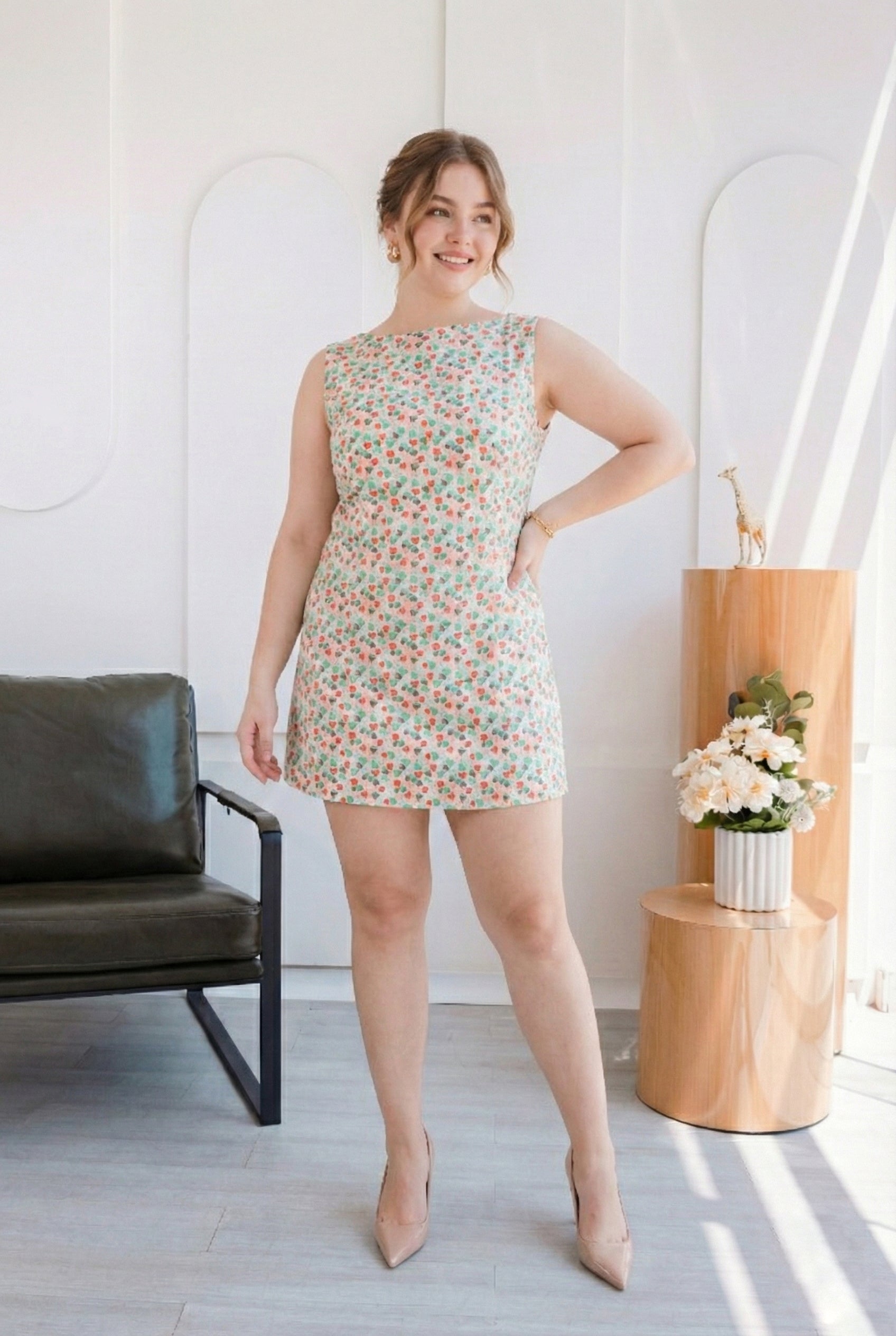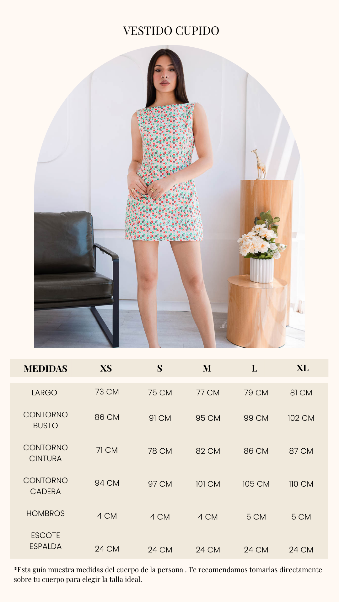 El Vestido Cupido es esa pieza que enamora a primera vista. Su silueta recta y corta realza la figura de manera favorecedora, mientras que su delicado estampado lleno de color aporta romanticismo.