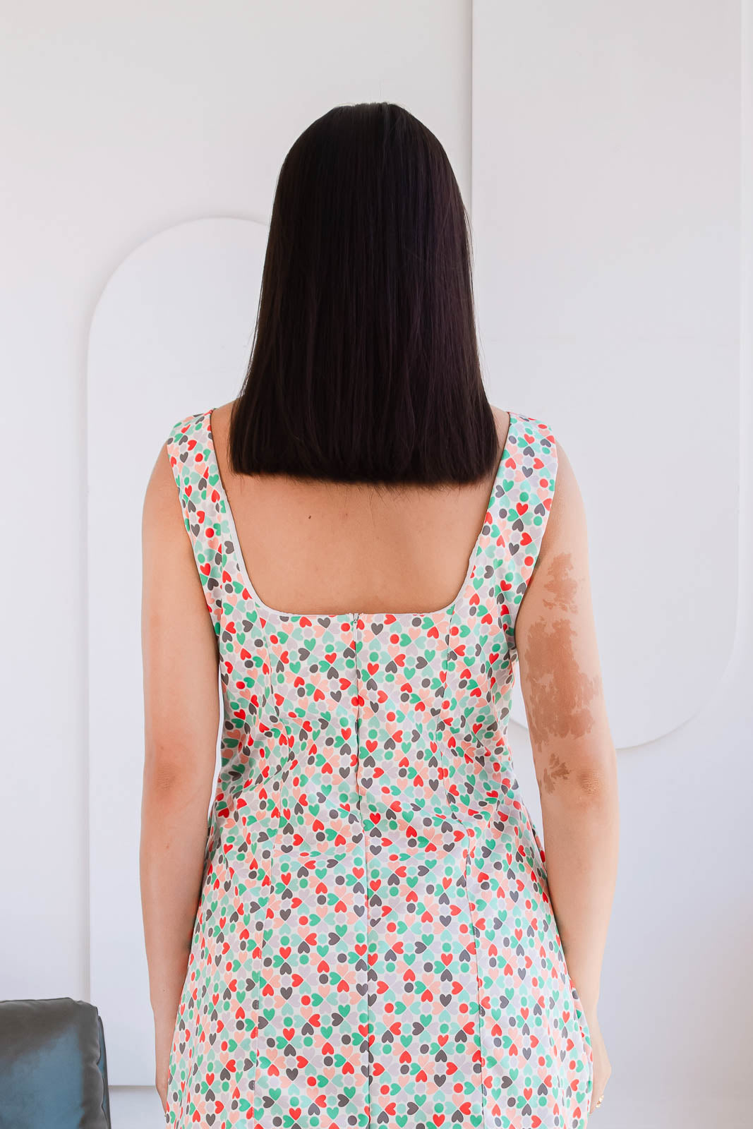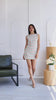 Confeccionado en material twill ligero, caída ligera y elegante. Su silueta recta y sin mangas crea un equilibrio entre lo chic y lo relajado, haciéndolo ideal para cualquier ocasión especial: una cita romántica, un evento de día o una reunión con amigas donde quieres sentirte y verte espectacular.