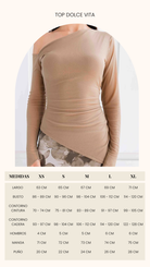Set de 2 piezas, versátil (uso junto o por separado). Falda midi de corte recto que estiliza la silueta y una top de corte asimétrico con detalle hombro descubierto aportando un toque sensual y femenino sin perder la sutileza.