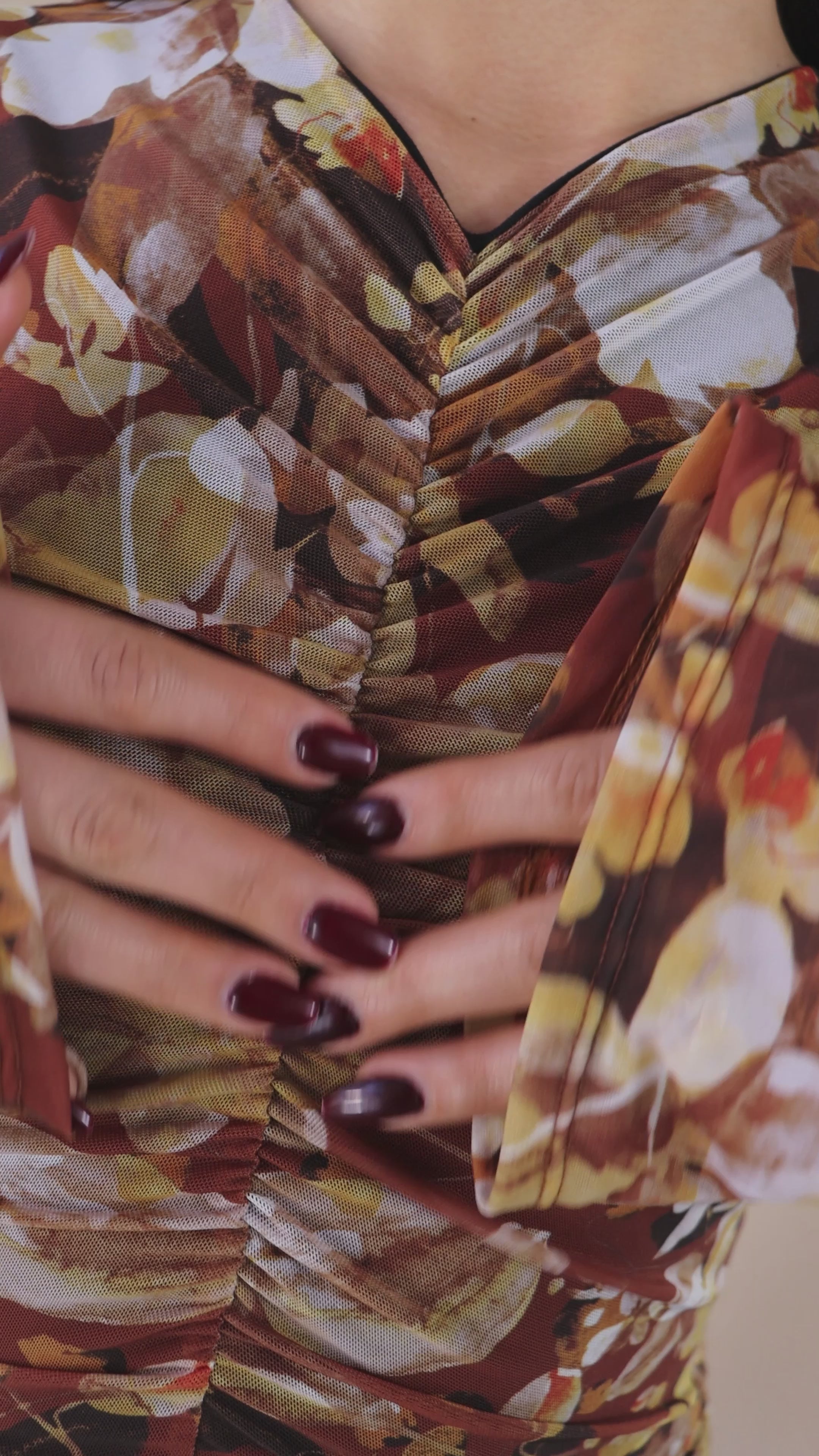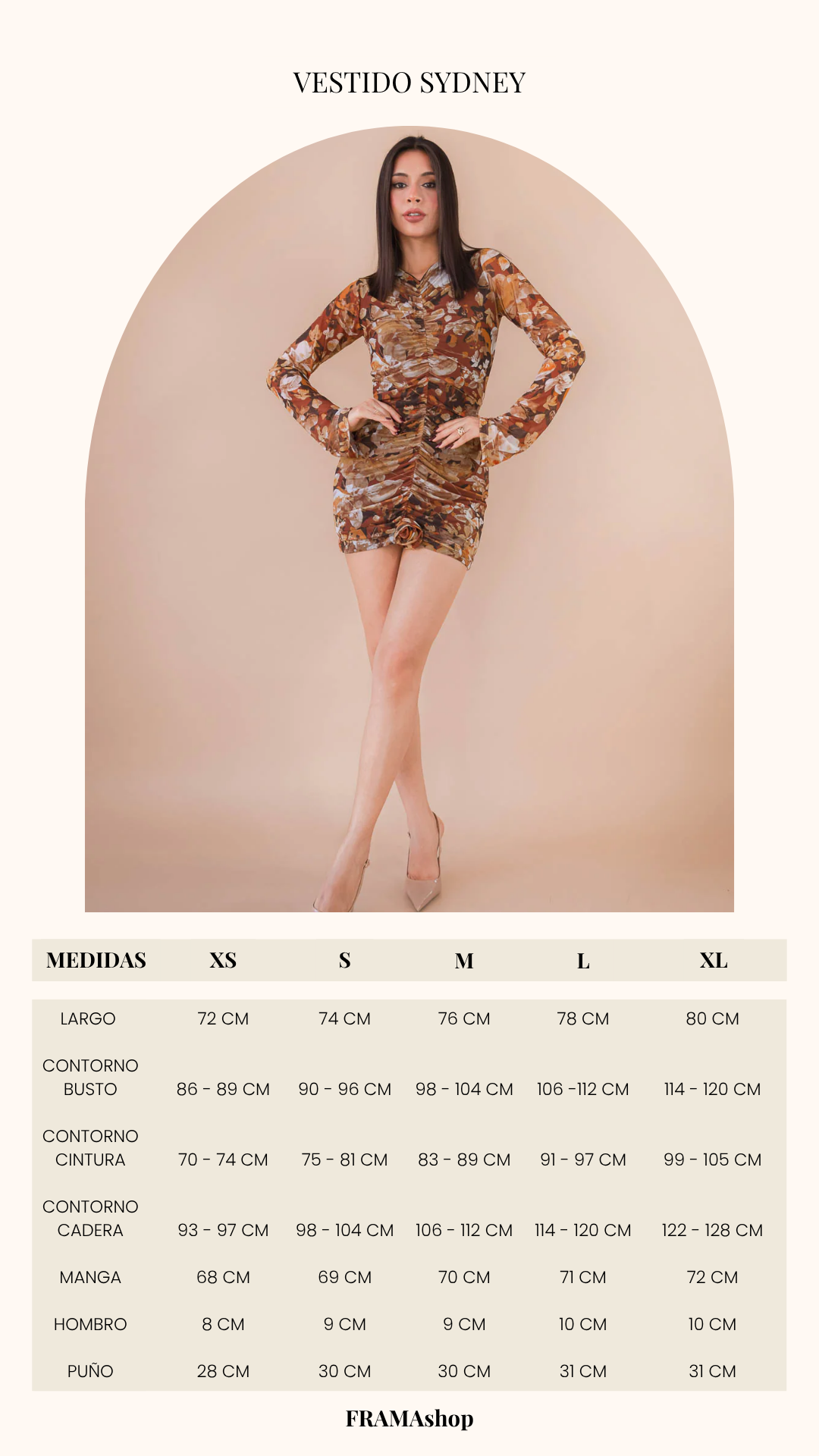 El vestido Sydney está pensado para mujeres que aman los detalles y la sutileza de lo natural. Vestido corto con estampado floral en tonos tierra, que transmite calidez y elegancia. Su drapeado frontal resalta la silueta con delicadeza, mientras las mangas largas y el cuello camisero hacen de él una pieza única. En el bajo, una rosa elaborada a mano para darte ese toque femenino y elegante.