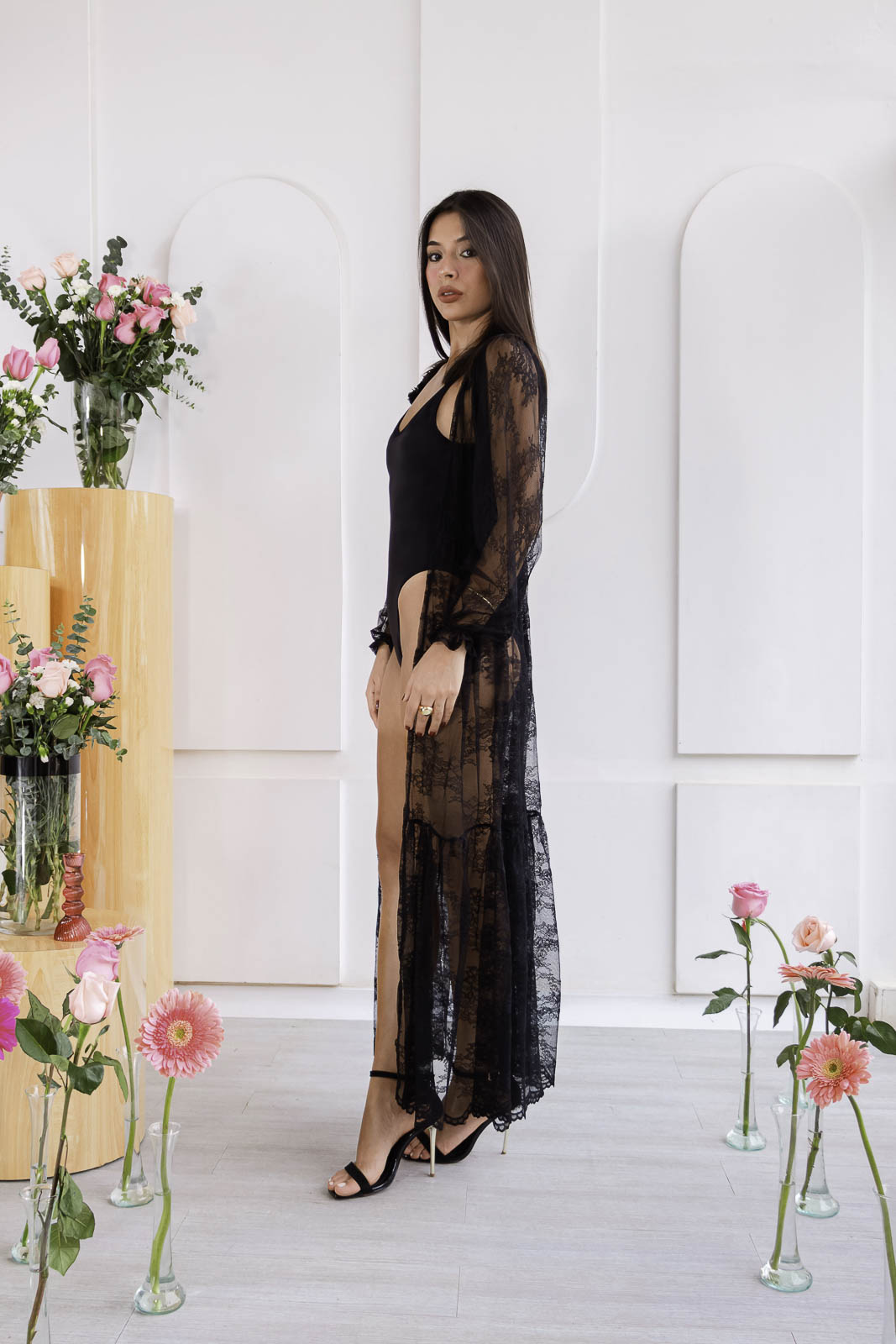 Es la definición de sensualidad y elegancia. Confeccionada en encaje delicado de textura floral, su diseño semitransparente deja entrever la piel de forma delicada y femenina.