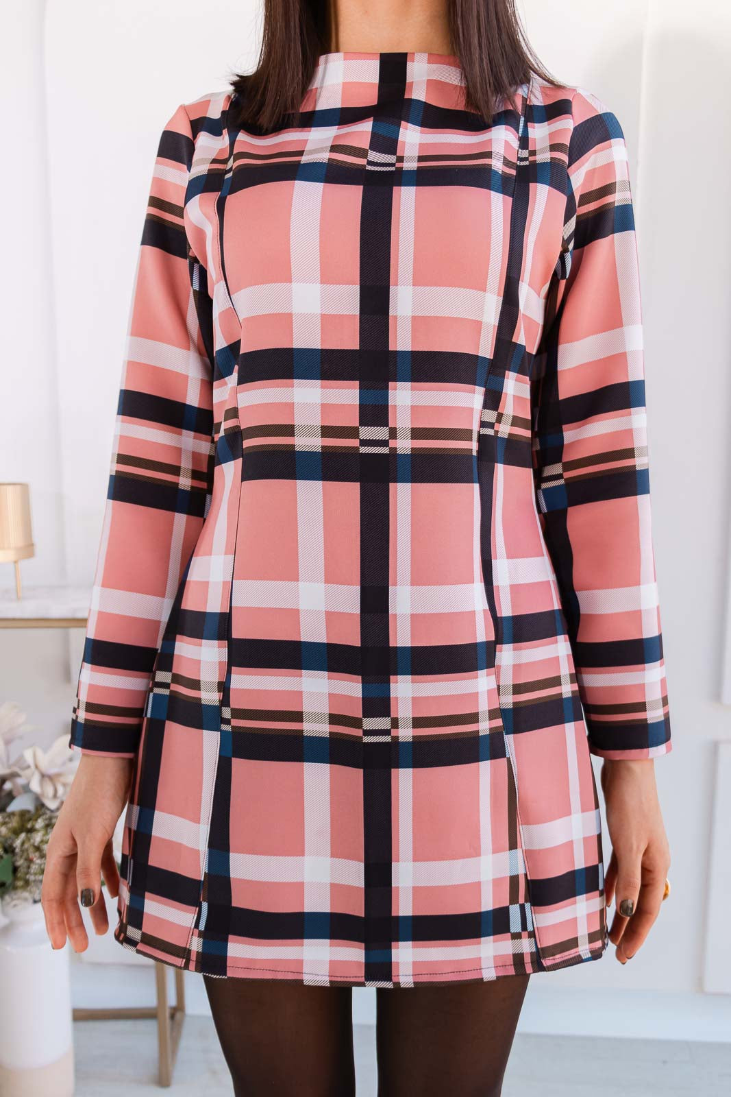 Su estampado tartán en tonos rosados es la definición de feminidad y sofisticación. El largo mini que estiliza las piernas es perfecto para eventos de día o de noche, cenas especiales,celebraciones o reuniones elegantes.