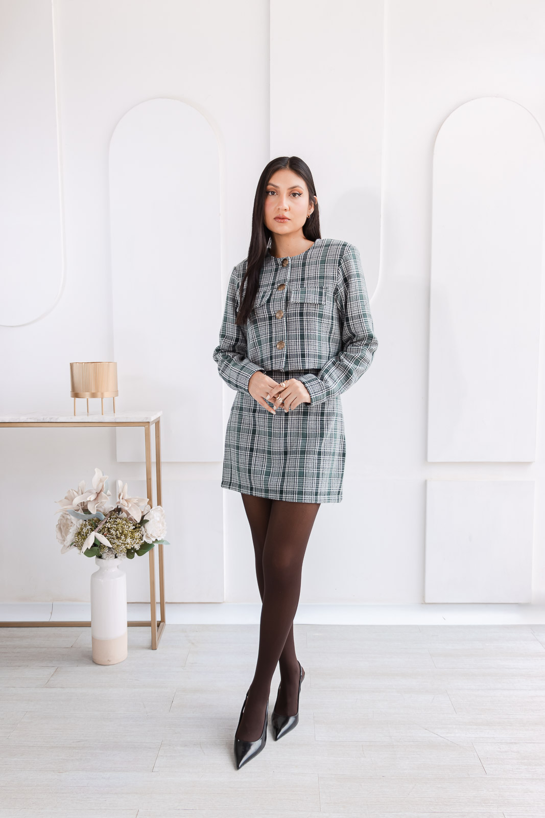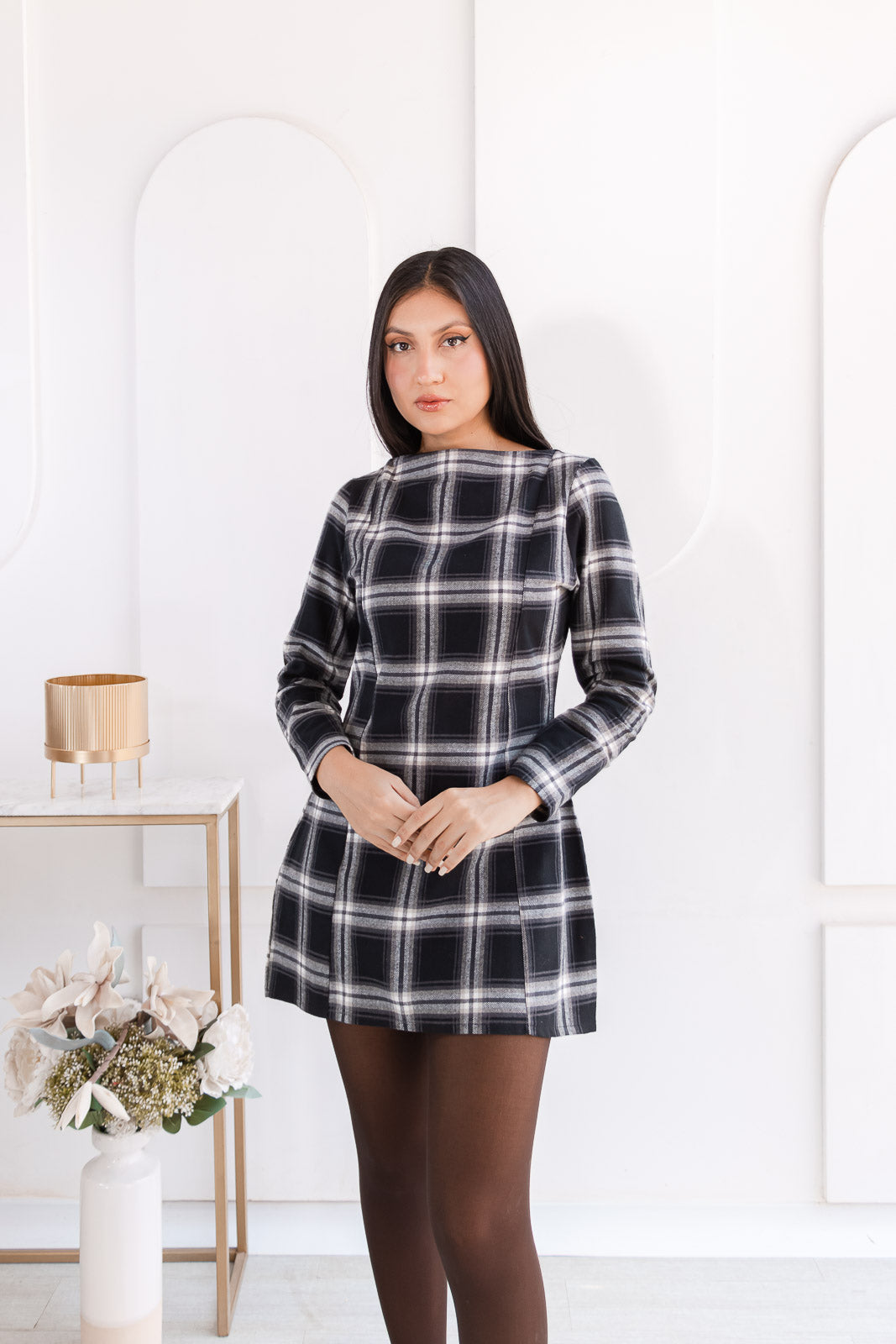 Vestido Mariana - Negro Tartán Estampado