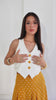 Chaleco de silueta estructurada y corte limpio, estiliza la parte superior y enmarca el torso de manera favorecedora. Falda larga con pliegues de caída amplia crea un movimiento ligero y elegante.