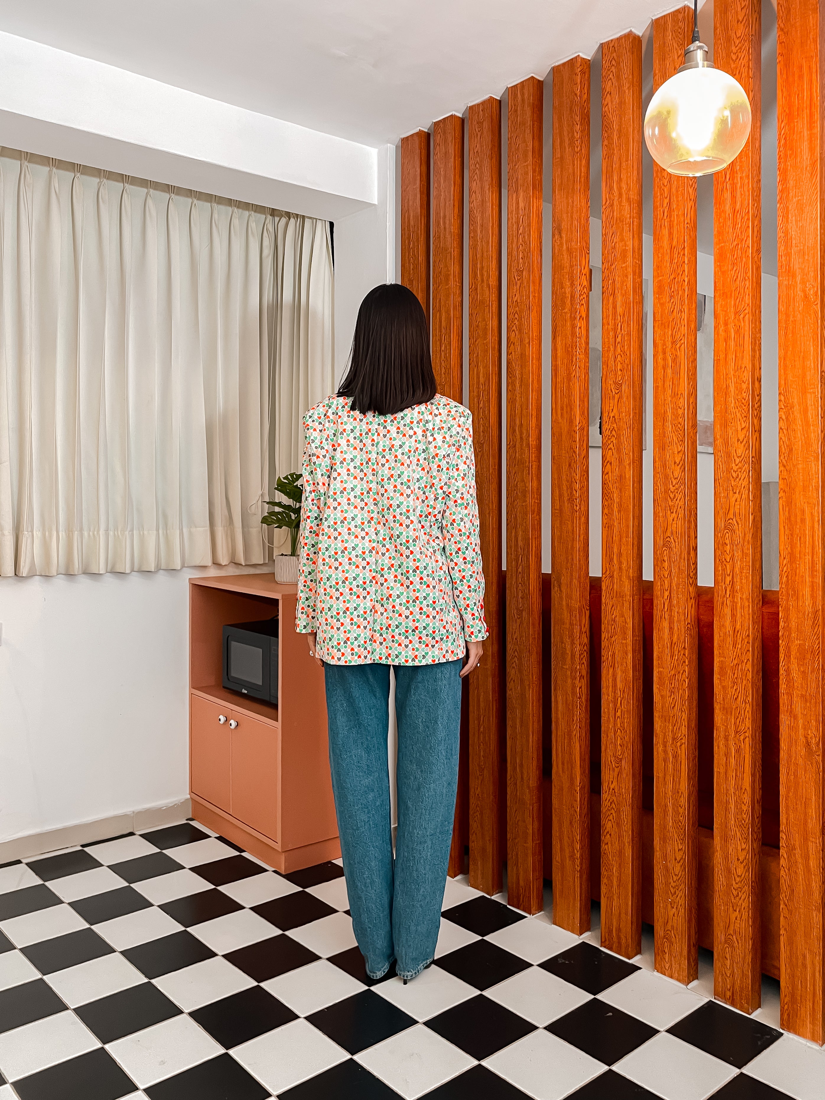 Lobelia es una declaración de poder y elegancia atemporal con una textura suave con estampado de corazones en tonos vibrantes. Elaborado en material drill sedoso cubano forrado en seda algodonada.