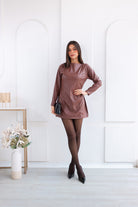 Minimalista, elegante. Elaborado en material cuerina, su tonalidad mocha mousse, uno de los colores más en tendencia de la temporada, aporta calidez y sofisticación, convirtiéndolo en una prenda clave. Es perfecto para eventos de día o de noche, cenas especiales, celebraciones o reuniones elegantes.