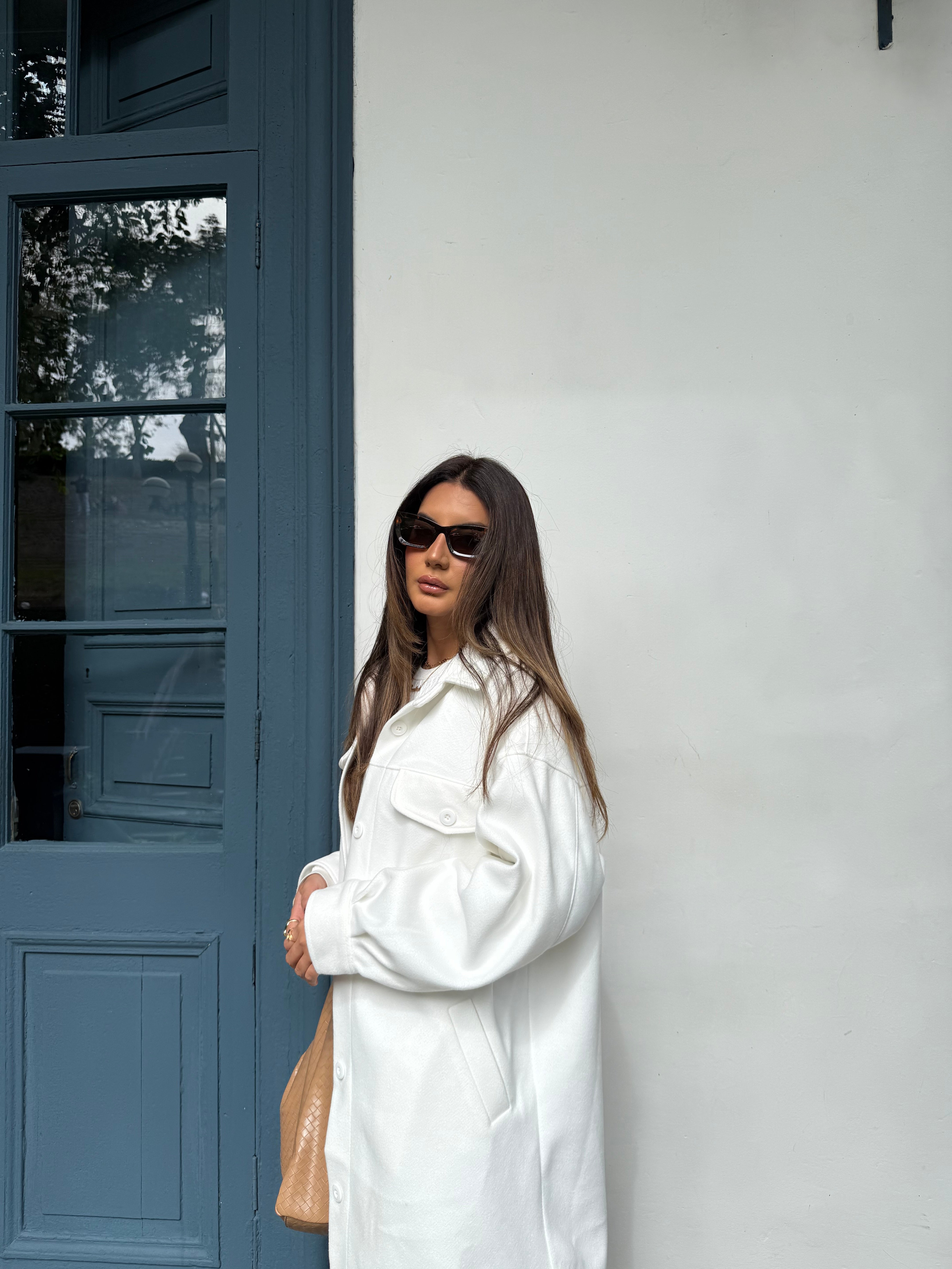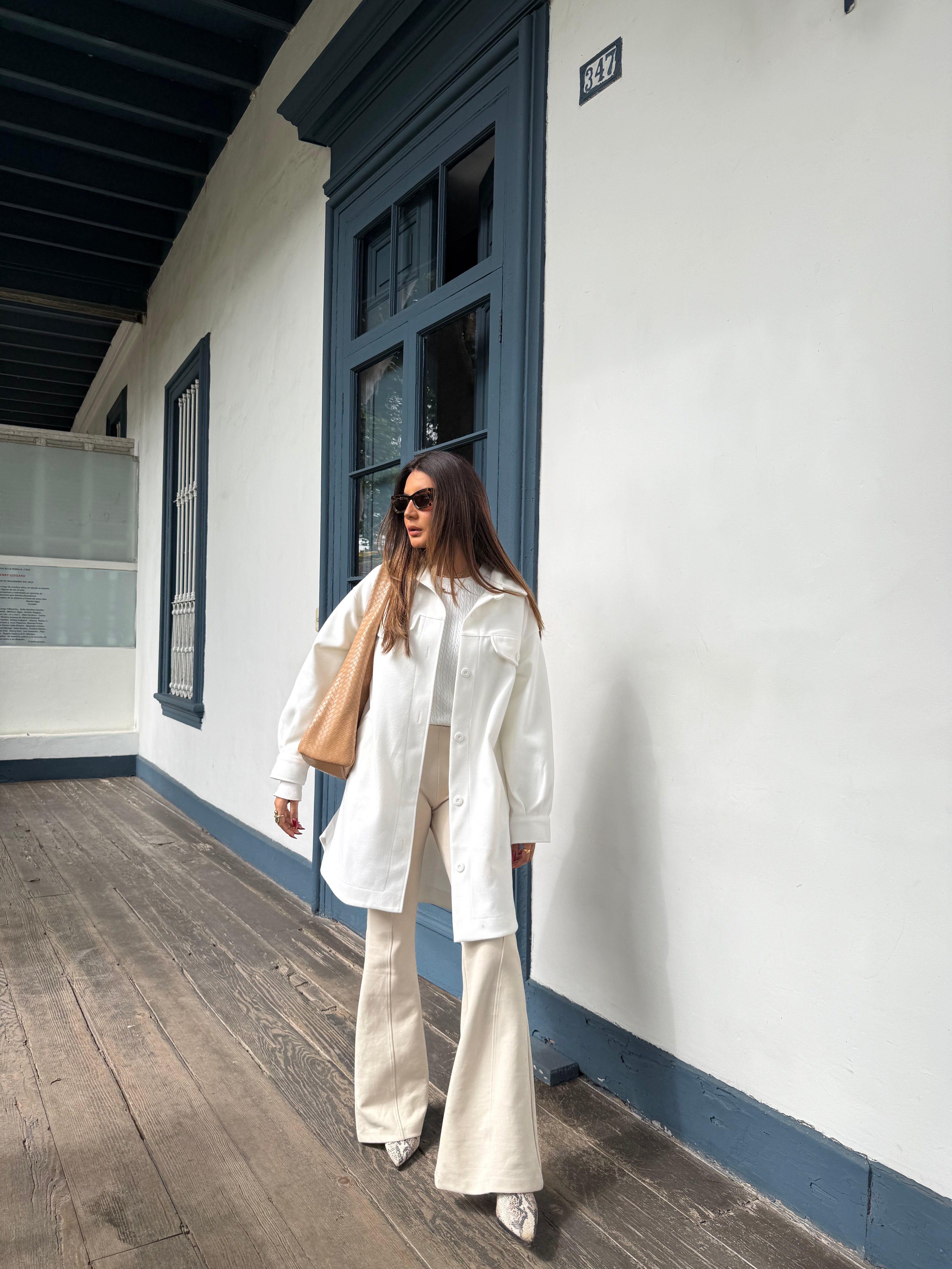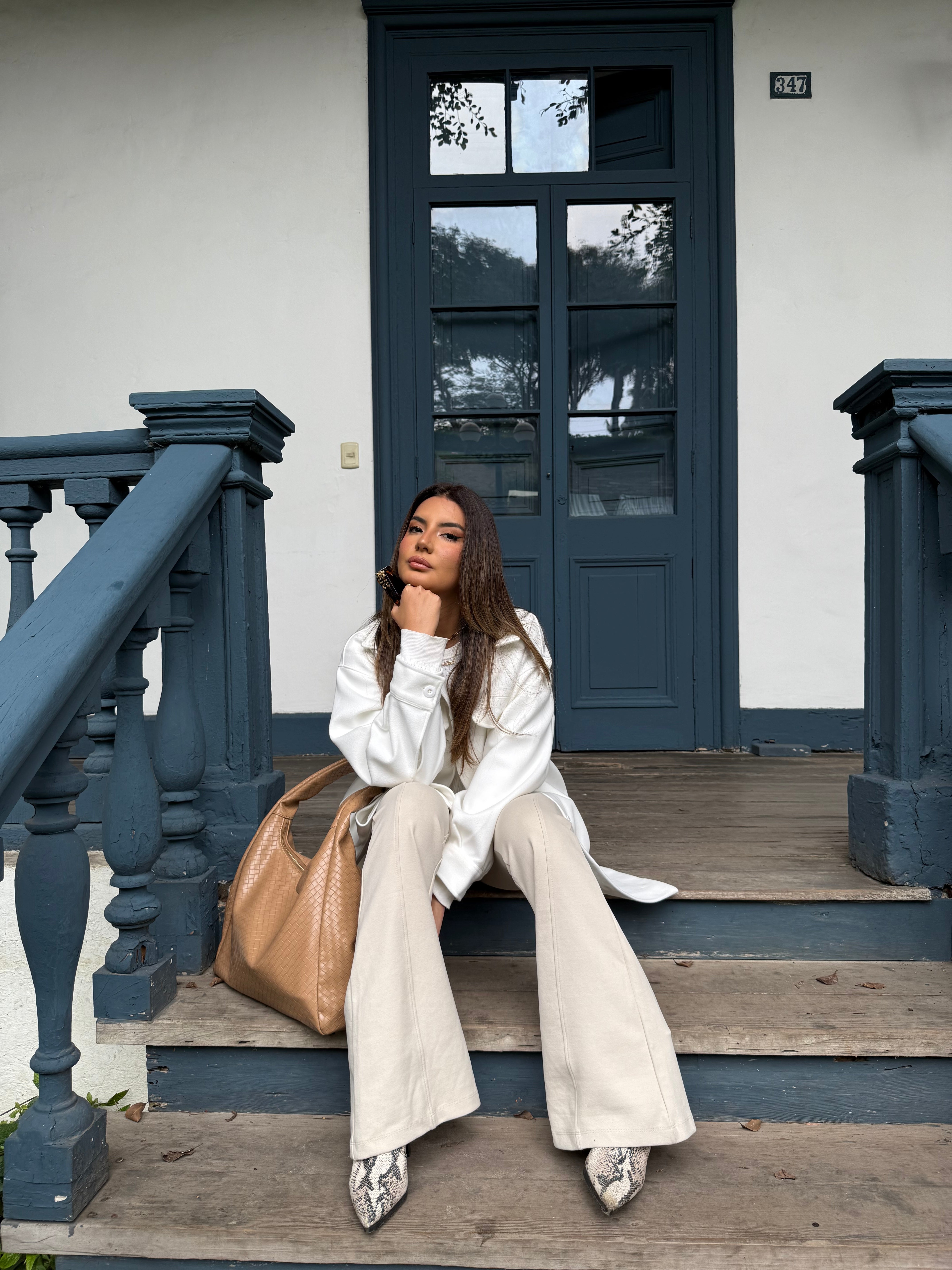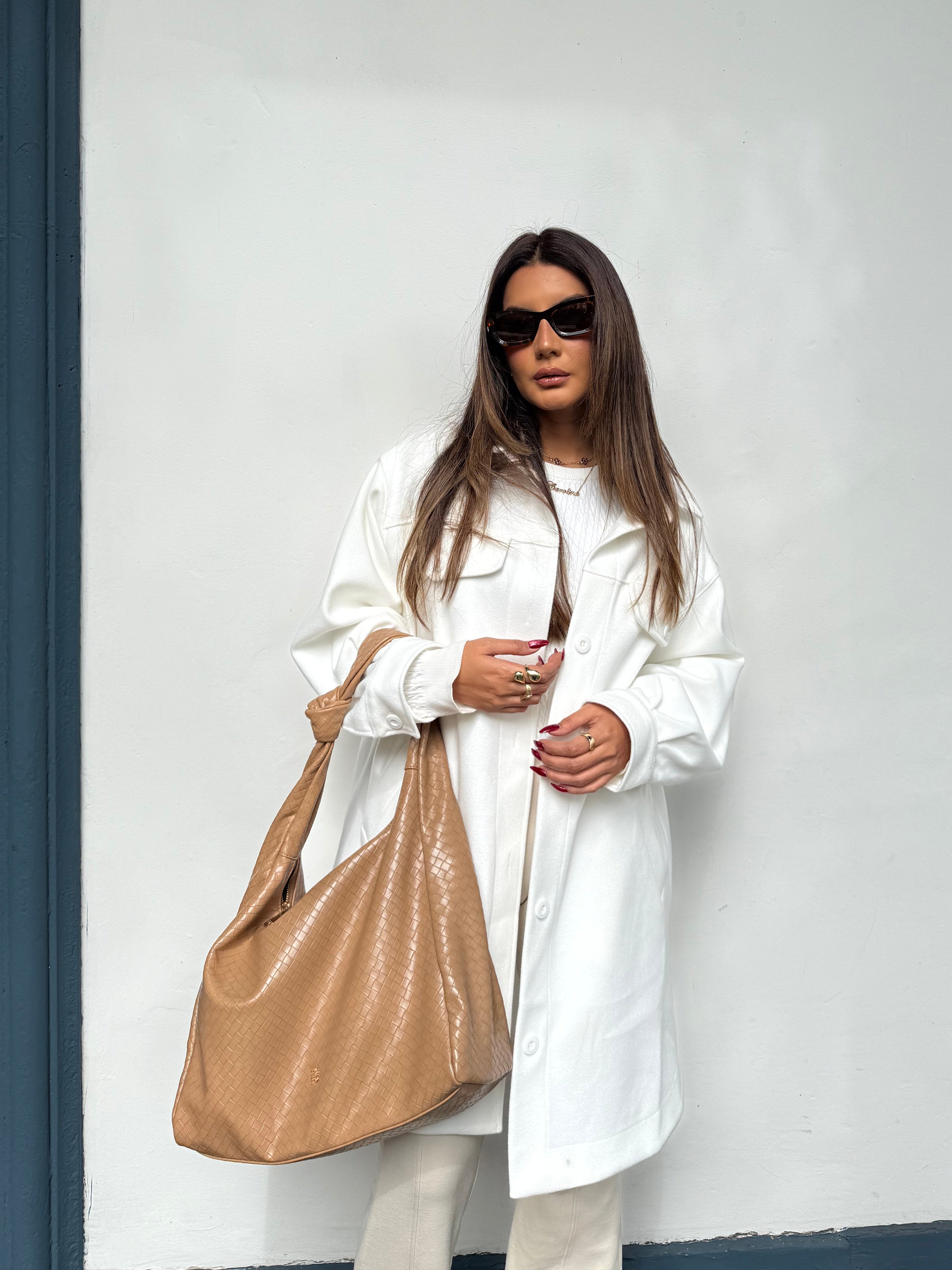 Nuestro saco Evony largo, con detalle de bolsillos en la parte delantera y color neutro —como blanco — será la opción perfecta para combinar con otras prendas. Recuerda que un saco de vestir sencillo es como un lienzo en blanco que te permite experimentar con otros elementos de tu atuendo.