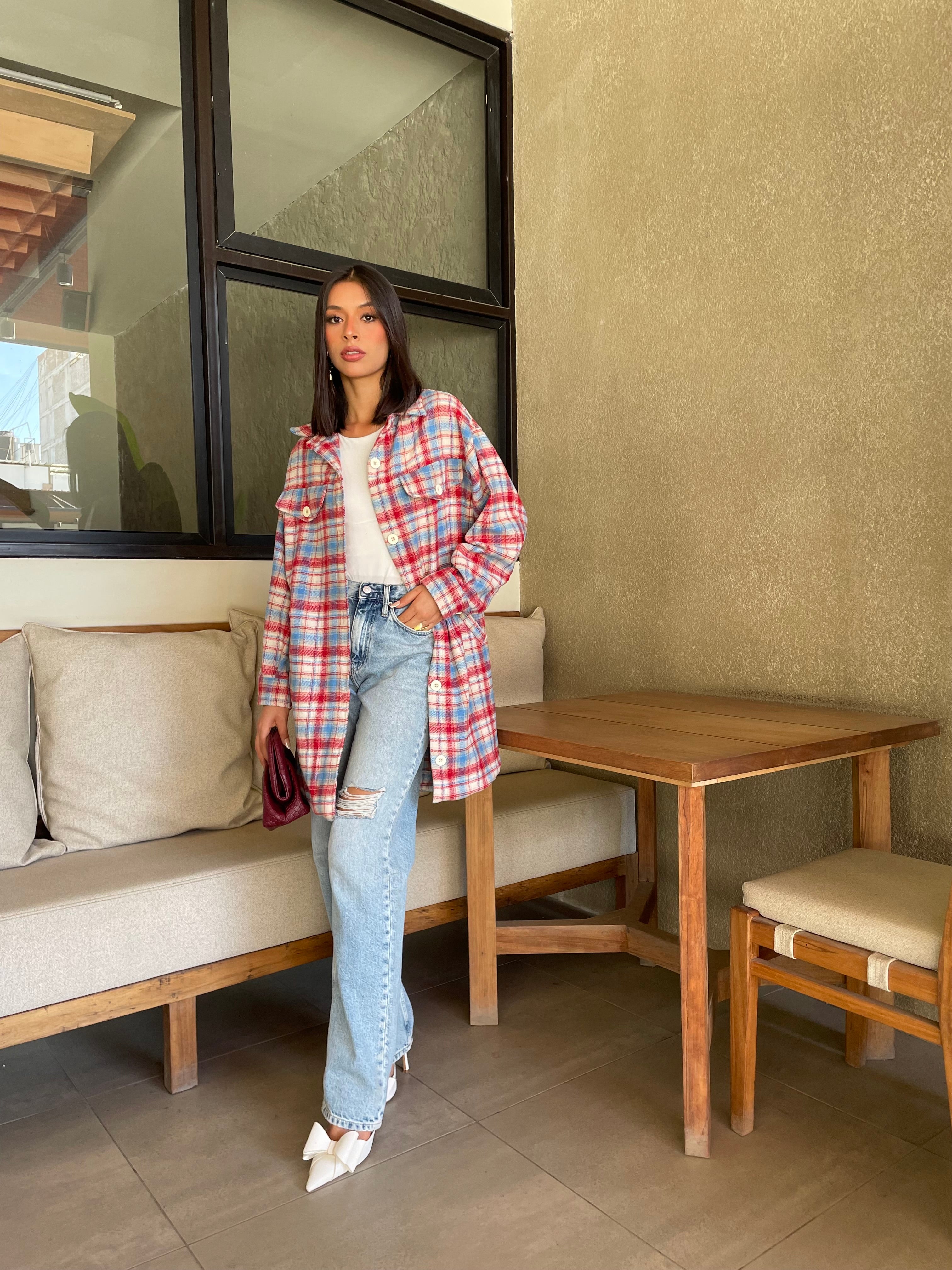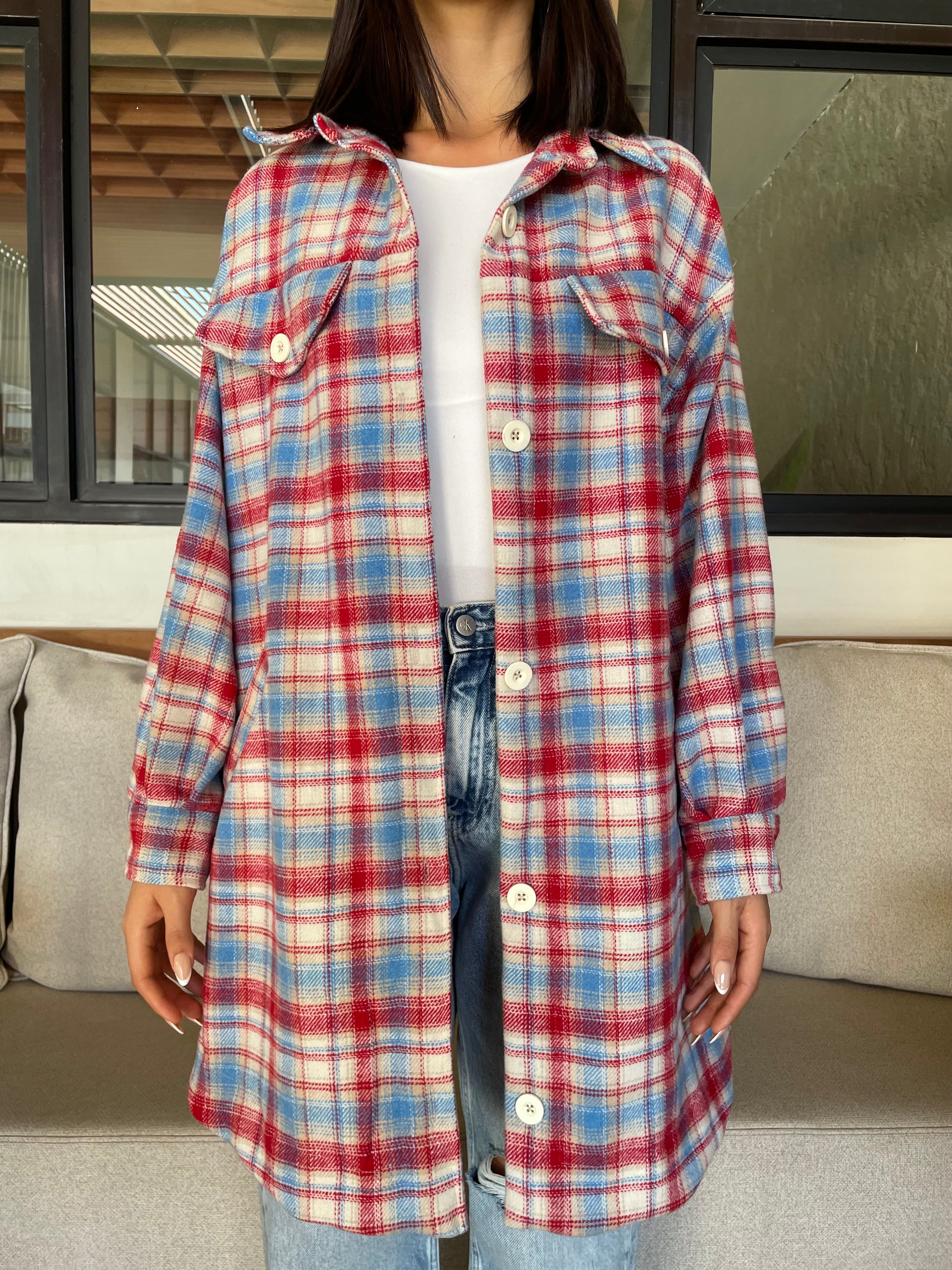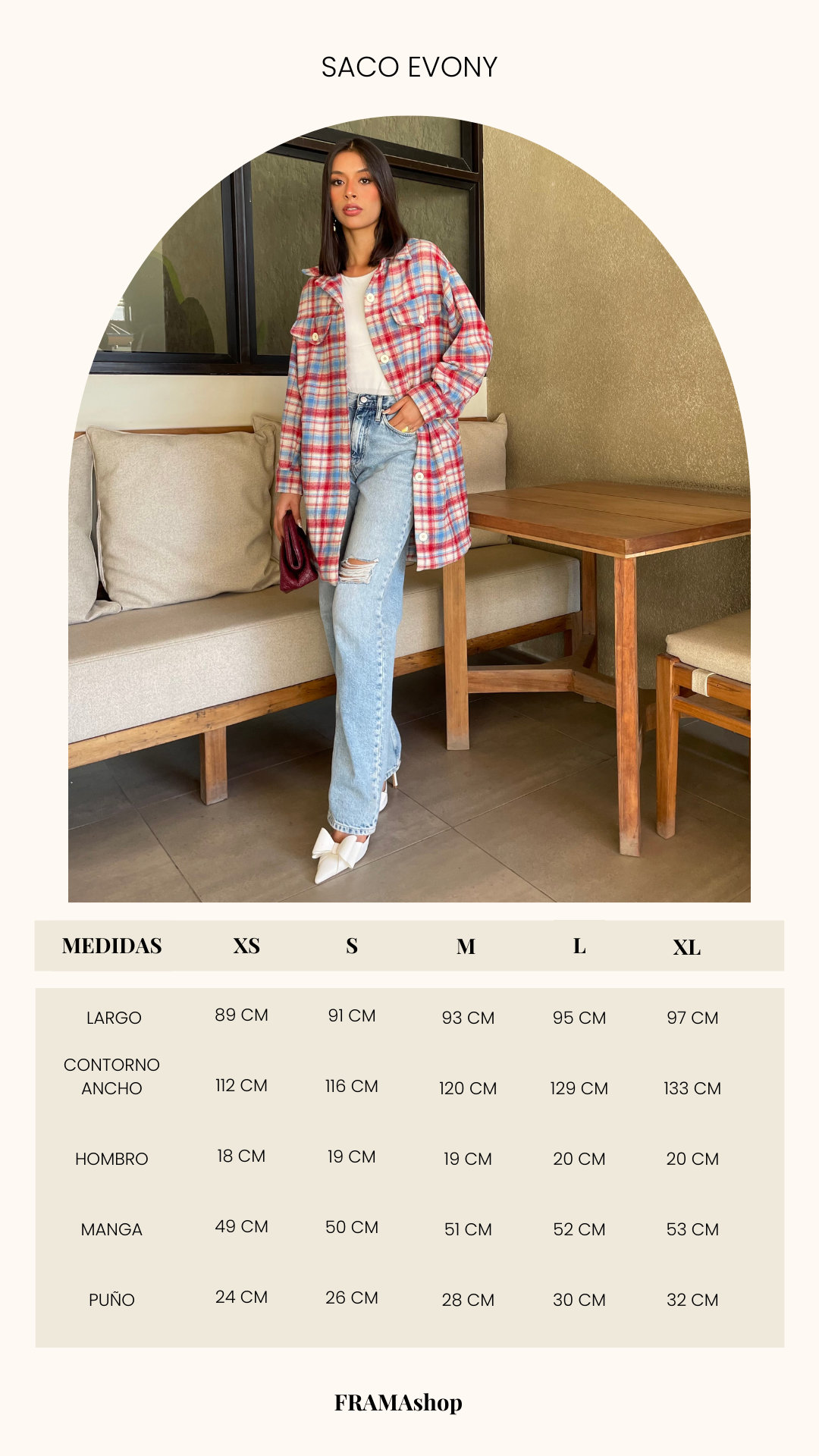 El saco Evony es la pieza perfecta para elevar cualquier look casual. Confeccionado en material de paño suave, luce un encantador estampado de cuadros en tonos celeste, rojo y blanco que le da un aire lleno de estilo. Su diseño largo aporta sofisticación sin perder esa vibra relajada que tanto nos encanta.
