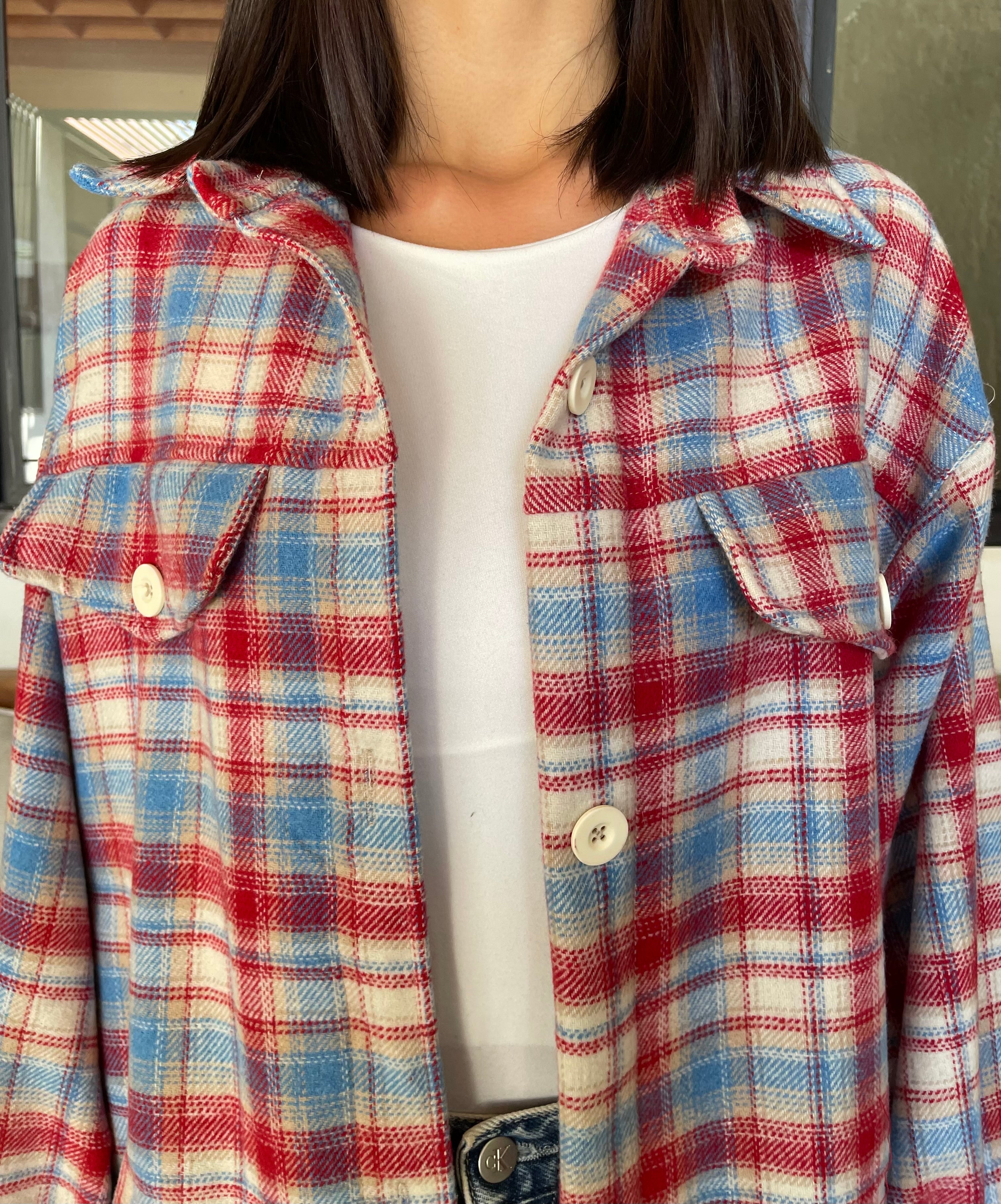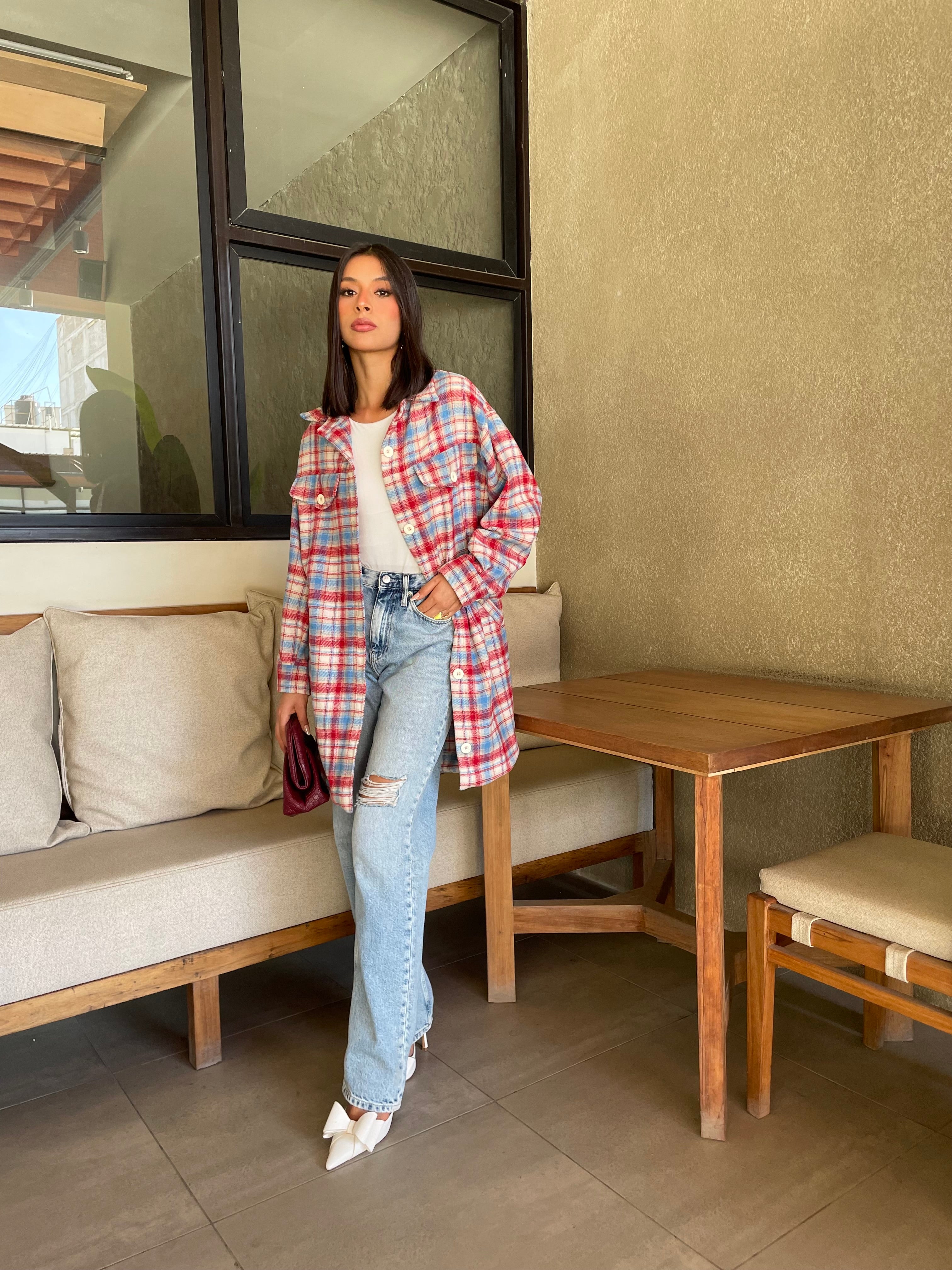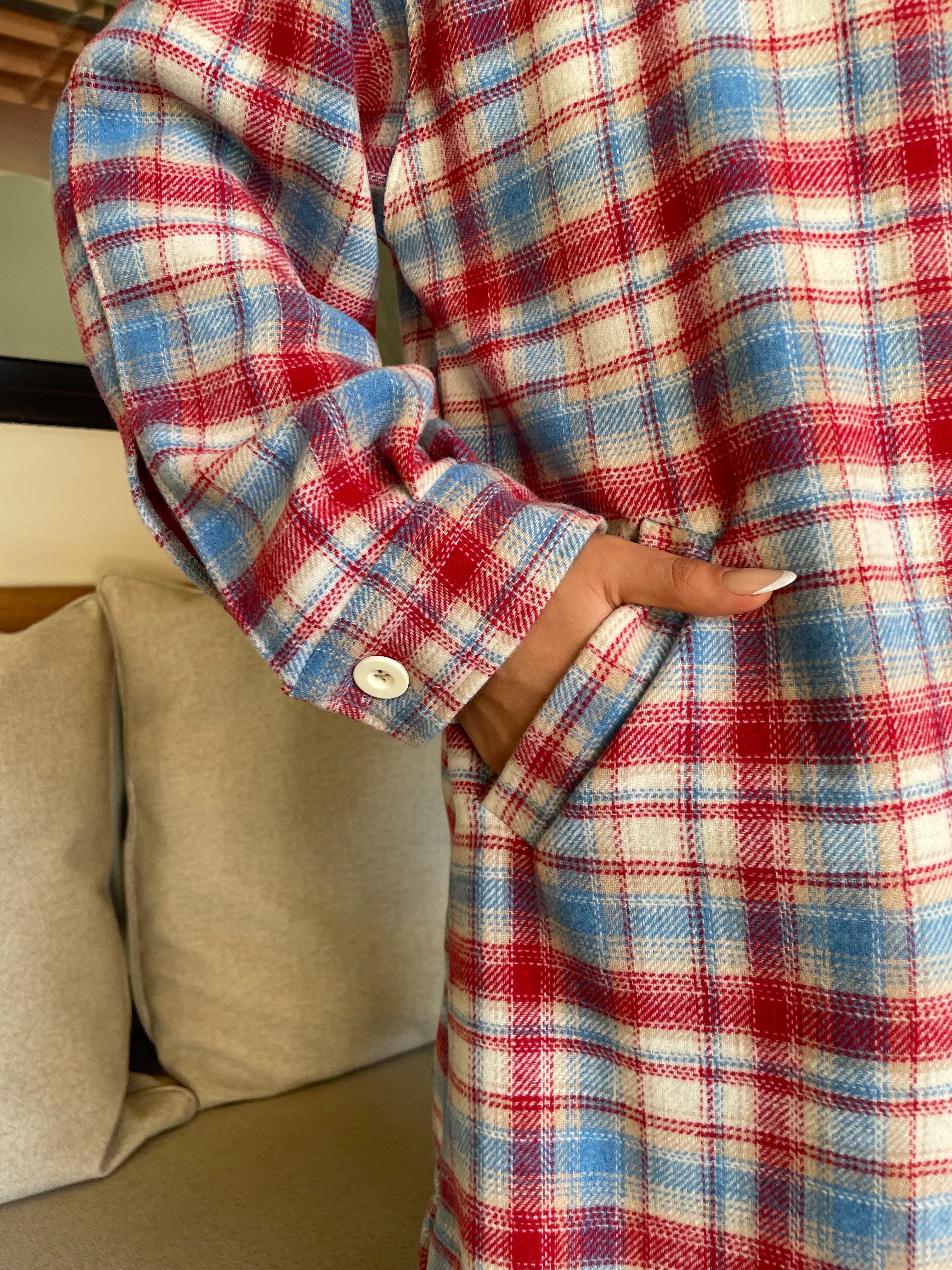 El saco Evony es la pieza perfecta para elevar cualquier look casual. Confeccionado en material de paño suave, luce un encantador estampado de cuadros en tonos celeste, rojo y blanco que le da un aire lleno de estilo. Su diseño largo aporta sofisticación sin perder esa vibra relajada que tanto nos encanta.