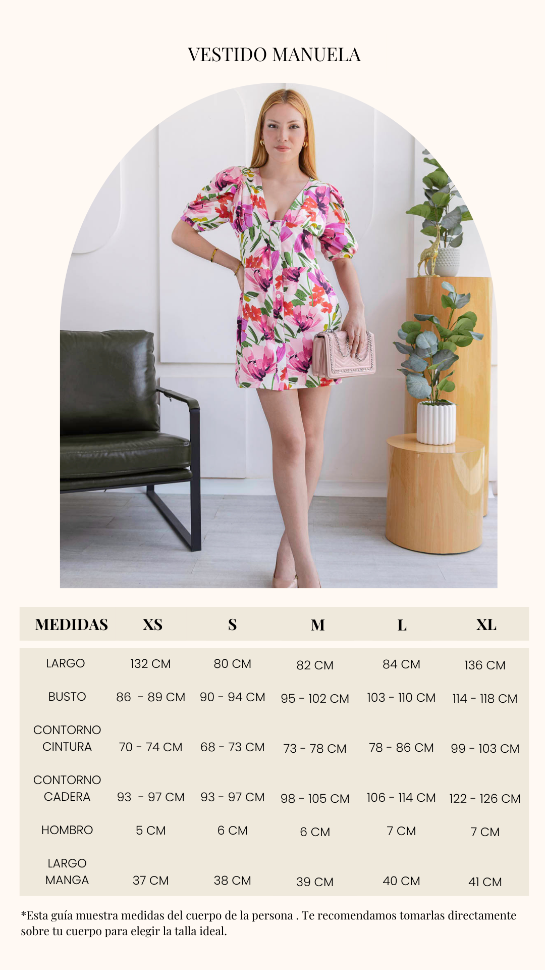 La modelo mide 1.73 cm y usa talla S