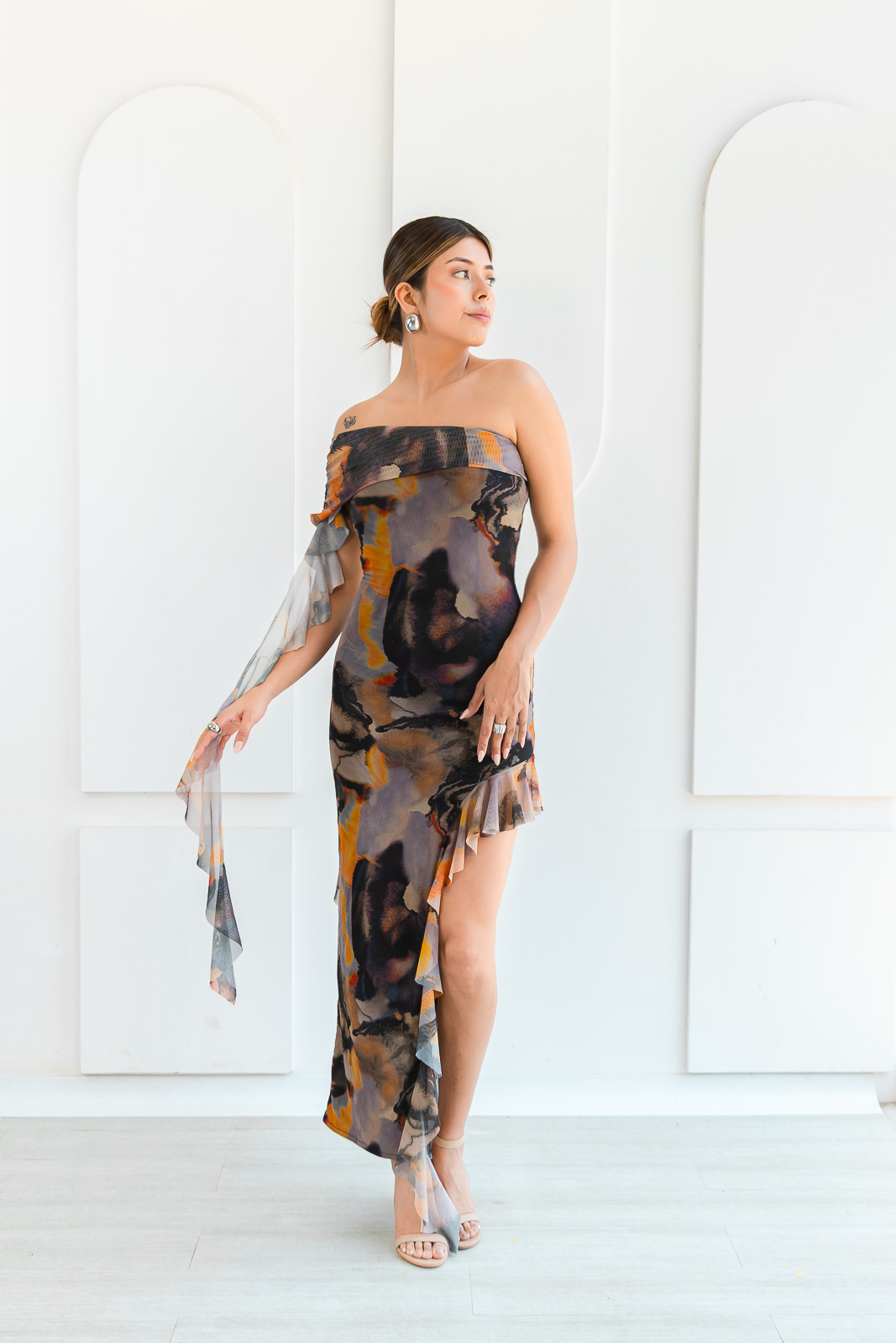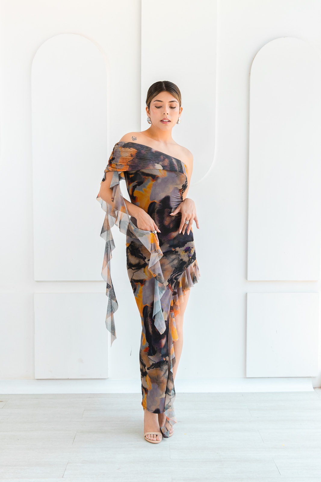 Y si por algo destaca este vestido es por el color abstracto, que denota elegancia y sofisticación ideal para utilizar en eventos de noche, cenas o fiestas donde definitivamente son un rotundo sí sin importar qué momento del año sea siempre serán una bomba de glamour y estilo.
