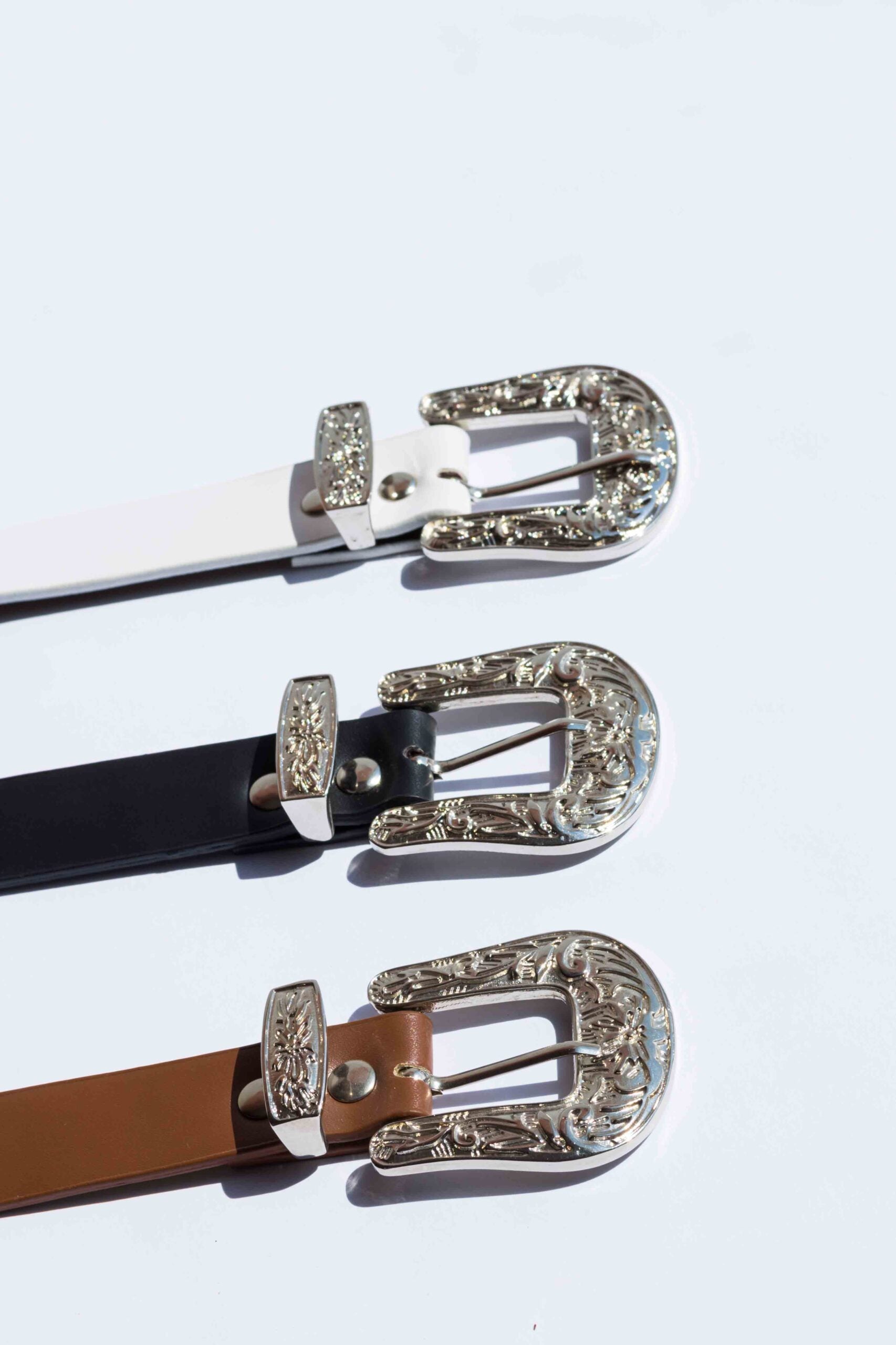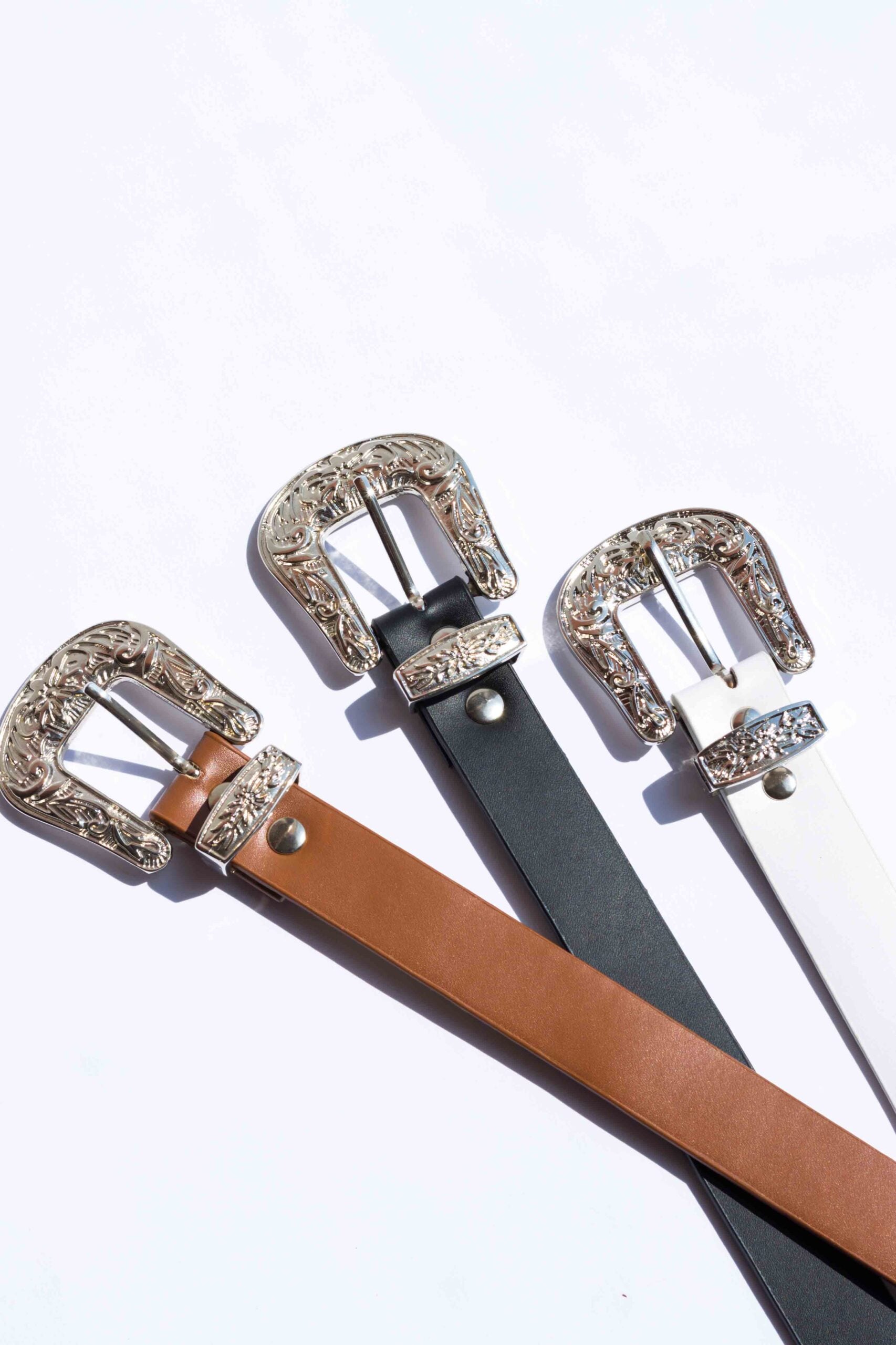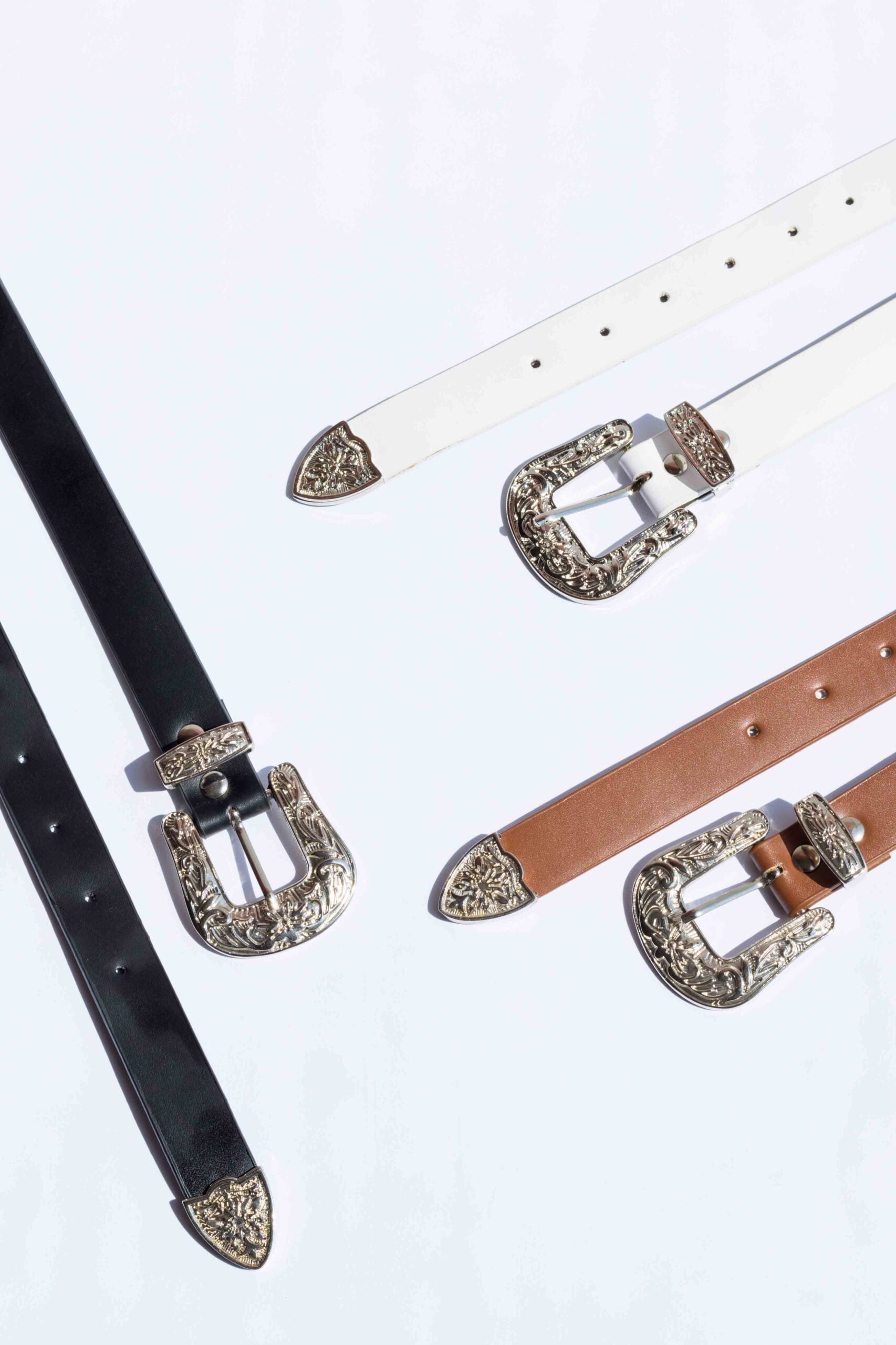 Cinturón de cuero sintético. Con hebilla de níquel.